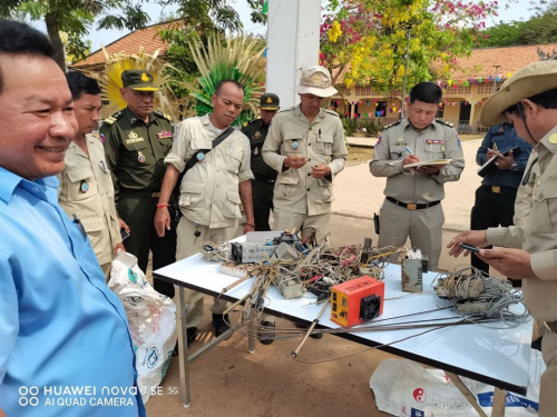 មន្ត្រីជលផលស្រុកកំពង់លែងខេត្តកំពង់ឆ្នាំងបានឃាត់ខ្លួនជនល្មើស៧នាក់ មកអប់រំណែនាំ និងរឹបអូសឧបករណ៍ឆក់ត្រីចំនួន៧គ្រឿង ដោយសារពួកគេលួចចូលឆក់ត្រី ក្នុងដែននេសាទ ស្ថិតនៅចំណុចអតីតឡូត៍លេខ៧Aដែលជាតំបន់អភិរក្សត្រីមេពូជ។