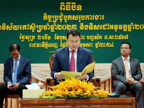 នៅព្រឹកថ្ងៃទី១៥ ខែមករា ឆ្នាំ២០២៤ ឯកឧត្តម តូច ប៊ុនហួរ រដ្ឋលេខាធិការ ក្រសួងកសិកម្ម រុក្ខាប្រមាញ់ និងនេសាទ តំណាងដ៏ខ្ពង់ខ្ពស់ ឯកឧត្តមរដ្ឋមន្ត្រី បានអញ្ជើញចូលរួមជាអធិបតីក្នុងពិធីបើកកិច្ចប្រជុំបូកសរុបលទ្ធផលការងារអនុវិស័យដំណាំឆ្នាំ២០២៣...