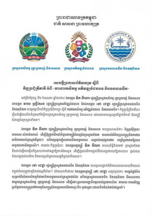 សេចក្តីប្រកាសព័ត៌មានរួម ស្ដីពី កិច្ចប្រជុំត្រីភាគី អំពី «ការងារកសិកម្ម អភិវឌ្ឍន៍ជនបទ និងធនធានទឹក»