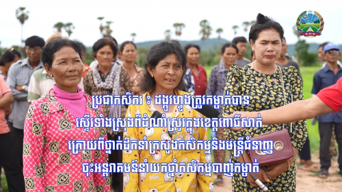 ប្រជាកសិករនៅខេត្តពោធិ៍សាត់ លើកឡើងប្រហាក់ប្រហែលគ្នាថា ដង្កូវត្រូវបានកម្ចាត់បានស្ទើរទាំងស្រុងពីដំណាំស្រូវ បន្ទាប់ពីឯកឧត្តម ឃឹម ហ្វីណង់ អនុរដ្ឋលេខាធិការក្រសួងកសិកម្មទទួលបន្ទុកខេត្តពោធិ៍សាត់...