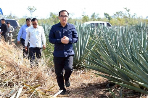 នៅព្រឹកថ្ងៃដដែល ចេញពីក្រុមហ៊ុន ឆាយណាហ្គ្រេតខល ឯកឧត្តមរដ្ឋមន្ត្រី និងសហការី បានបន្តដំណើរមកពិនិត្យសកម្មភាពផលិត និងកែច្នៃគ្រាប់ស្វាយចន្ទីរបស់ក្រុមហ៊ុន សានតាណាអាហ្គ្រោប្រដាក់...