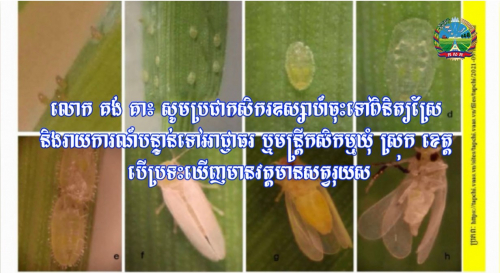 លោក គង់ គា ប្រធាននាយកដ្ឋានដំណាំស្រូវ បានសំណូមពរដល់ប្រជាកសិករឱ្យឧស្សាហ៍ចុះទៅពិនិត្យស្រែរបស់ខ្លួន ដើម្បីចៀសវាង និងទប់ស្កាត់ការបំផ្លាញរបស់សត្វរុយស ហើយបើពិនិត្យឃើញថា...