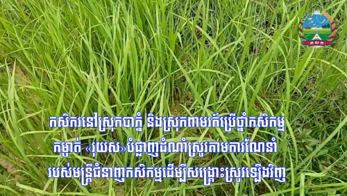 ប្រជាកសិករនៅស្រុកបាភ្នំ និងស្រុកពាមរក៍ ខេត្តព្រៃវែង លើកឡើងថា ការប្រើថ្នាំកសិកម្មកម្ចាត់ "រុយស" ដែលបំផ្លាញដំណាំស្រូវ តាមការណែនាំរបស់មន្ត្រីជំនាញកសិកម្ម...