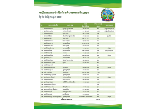 សម្រាប់ថ្ងៃទី១០ ខែវិច្ឆិកា ឆ្នាំ២០២៥ រោងម៉ាស៊ីនជាដៃគូរបស់ក្រសួងកសិកម្ម រុក្ខាប្រមាញ់ និងនេសាទ បន្តប្រមូលទិញស្រូវចំនួនជាង ១៥០០០ តោន ពីពុកម៉ែបងប្អូនប្រជាកសិករទូទាំងប្រទេស។
