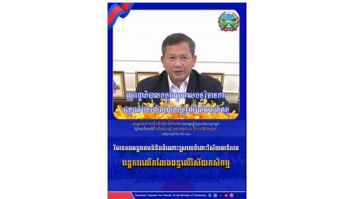 នៅយប់ថ្ងៃព្រហស្បតិ៍ ទី២២ ខែសីហា ឆ្នាំ២០២៤ សម្តេចមហាបវរធិបតី ហ៊ុន ម៉ាណែត នាយករដ្ឋមន្រ្តី នៃព្រះរាជជាណាចក្រកម្ពុជា បានថ្លែងសារពិសេសអំពីសមិទ្ធផល១ឆ្នាំ របស់រាជរដ្ឋាភិបាល...