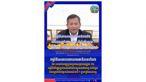 នៅយប់ថ្ងៃព្រហស្បតិ៍ ទី២២ ខែសីហា ឆ្នាំ២០២៤ សម្តេចមហាបវរធិបតី ហ៊ុន ម៉ាណែត នាយករដ្ឋមន្រ្តី នៃព្រះរាជជាណាចក្រកម្ពុជា បានថ្លែងសារពិសេសអំពីសមិទ្ធផល ១ឆ្នាំ របស់រាជរដ្ឋាភិបាល...