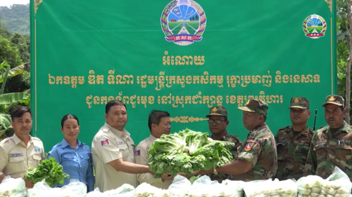 បន្លែជាអំណោយរបស់ឯកឧត្តមរដ្ឋមន្ដ្រី ឌិត ទីណា ត្រូវបានប្រគល់ជូនបងប្អូនកងទ័ពជួរមុខនៅក្នុងខេត្តព្រះវិហារ ក្នុងស្មារតីខ្មែរជួយខ្មែរនិងដើម្បីផ្តល់អាហាររូបត្ថម្ភដែលមានគុណភាពដល់កងទ័ពជួរមុខ។...