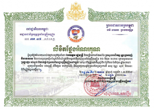 លិខិតថ្លែងអំណរគុណ ជូនចំពោះ ឯកឧត្តមរដ្ឋមន្ត្រី ឌិត ទីណា និងមន្ត្រីរាជការទាំងអស់នៃ ក្រសួងកសិកម្ម រុក្ខាប្រមាញ់ និងនេសាទ ដែលបានចូលរួមរៀបចំស្តង់ពិព័រណ៍ក្នុងទិវាអន្តរជាតិប្រយុទ្ធប្រឆាំងគ្រឿងញៀន...