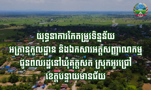 ប្រជាពលរដ្ឋនៅស្រុកអូរជ្រៅ ខេត្តបន្ទាយមានជ័យ សម្ដែងក្តីត្រេកអរ ដោយមានមន្ត្រីក្រុមការងារចំពោះកិច្ច ចុះកែតម្រូវទិន្នន័យអត្រានុកូលដ្ឋាន និងឯកសារអត្តសញ្ញាណកម្មជូនពលរដ្ឋដល់មូលដ្ឋាន...