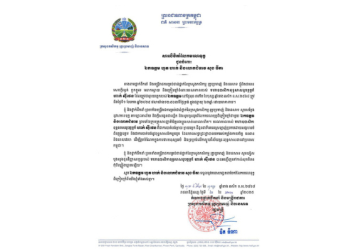 សារលិខិតរំលែកមរណទុក្ខ ជូនចំពោះ ឯកឧត្តម ហួត ហាក់ និងលោកជំទាវ សុង ធីតា