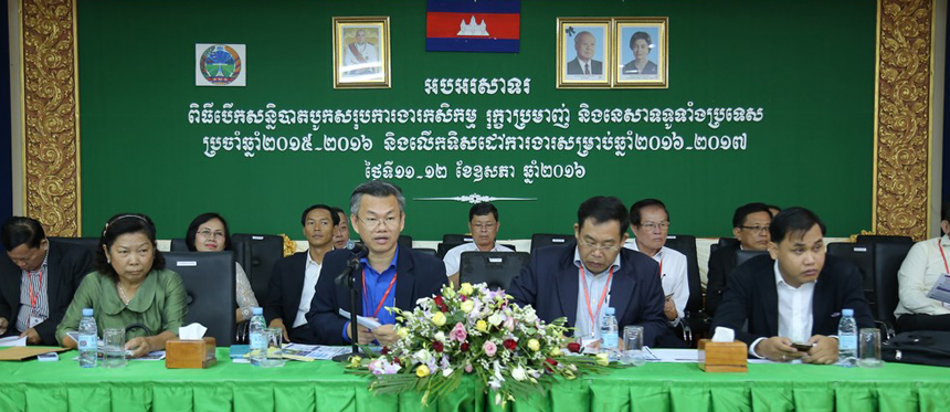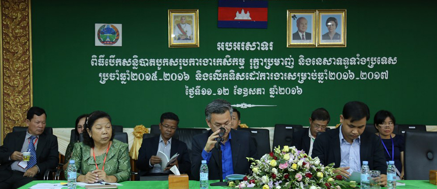 នៅថ្ងៃទី១២ ខែឧសភា ឆ្នាំ២០១៦ ពីម៉ោង ៨:៣០ ដល់ ១១:៣០ព្រឹក អង្គសន្និបាតកសិកម្មបានលើកយកប្រធានបទ “វិធានការពង្រឹងអនាម័យ និងភូតគាមអនាម័យ ដើម្បីសម្រួលពាណិជ្ជកម្ម និងបង្កើនទីផ្សារសម្រាប់ផលិតផលកសិកម្មកម្ពុជា”...