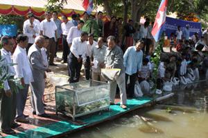 កូនត្រីចំនួន៧០ពាន់កូន និងមេត្រីពូជចំនួន១២០គឺឡូក្រាម ត្រូវបានលែងទៅក្នុងស្រះសហគមន៏ត្រពាំងខន ឃុំត្រពាំងធំ ខាងត្បូង ស្រុកត្រាំកក់ កាលពីពេលថ្មីៗនេះ...