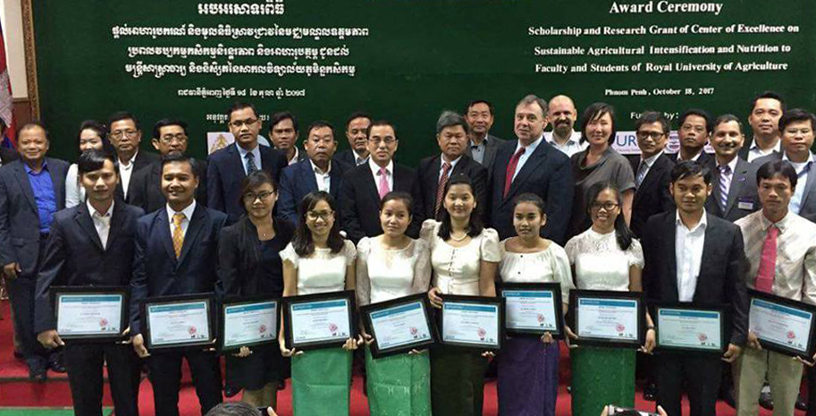 នៅសាកលវិទ្យាល័យភូមិន្ទកសិកម្មនាព្រឹកថ្ងៃទី១៨ ខែតុលា ឆ្នាំ២០១៧ បានរៀបចំពិធីផ្តល់អាហារូបករណ៍មូលនិធិស្រាវជ្រាវដល់និស្សិត និងពិនិត្យសមិទ្ធផលរបស់មជ្ឈមណ្ឌលឧត្តមភាពប្រពលវប្បកម្មកសិកម្មនិរន្តភាពនិងអាហារូបត្ថម្ភ...