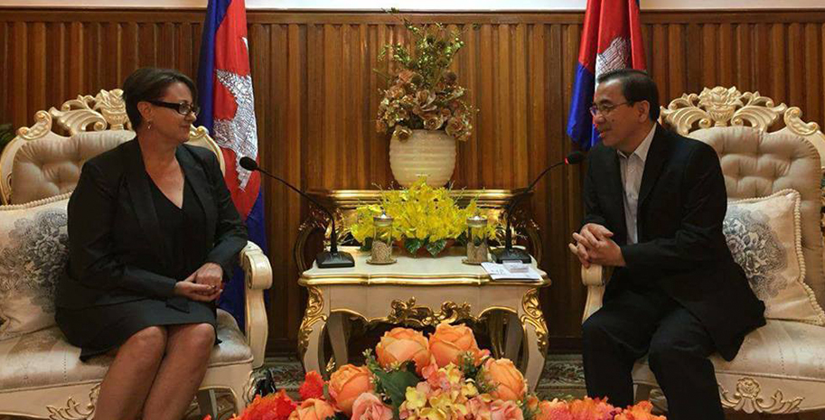 នៅទីស្តីការក្រសួងកាលពីព្រឹកថ្ងៃទី០៨ ខែវិច្ឆិកា ឆ្នាំ២០១៧ ឯកឧត្តម វេង សាខុន រដ្ឋមន្រ្តីក្រសួងកសិកម្មរុក្ខា ប្រមាញ់និងនេសាទ បានអនុញ្ញាតឲ្យលោកជំទាវ Angela Corcoran ឯកអគ្គរាជទូតអូស្រ្តាលីប្រចាំព្រះរាជាណាចក្រកម្ពុជានិងសហការីចូលជួបសម្តែងការគួរសម...