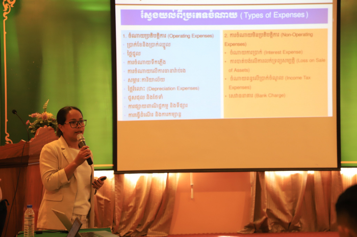នៅព្រឹកថ្ងៃទី ២៤ ខែតុលា ឆ្នាំ ២០២៥ ឯកឧត្តម បណ្ឌិត មាស ពិសិដ្ឋ រដ្ឋលេខាធិការក្រសួងកសិកម្ម រុក្ខាប្រមាញ់ និងនេសាទ និងជានាយកកម្មវិធី “ គាំទ្រសេដ្ឋកិច្ចជនបទ និងពាណិជ្ជកម្មផលិតផលកសិកម្ម (ASPIRE-AT) និង អ្នកឧកញ៉ា ភួ វាសនា ប្រធានសភាពាណិជ្ជកម្មខេត្តបាត់ដំបង បានអញ្ជើញជាអធិបតី ក្នុងពិធីបើកវគ្គបណ្តុះបណ្តាល ស្តីពី “ ការគ្រប់គ្រងហិរញ្ញវត្ថុ ” ដែលកម្មវិធី និងសភាពាណិជ្ជកម្មកម្ពុជាបានសហការគ្នាធ្វើ ដើម្បីបង្កើនសមត្ថភាពអ្នកគ្រប់គ្រងសហគ្រាសធុនតូច និងមធ្យម ឬ ក្រុមហ៊ុនកសិកម្ម ។ អ្នកចូលរួមក្នុងពិធីនោះ មានថ្នាក់ដឹកនាំ និងមន្រ្តី នៃលេខាធិការដ្ឋានកម្មវិធី ASPIRE-AT សភាពាណិជ្ជកម្មកម្ពុជា និងតំណាងសហគ្រាសធុនតូច និងមធ្យម សរុបចំនួន ៣៣ នាក់ ក្នុងនោះមានស្រ្តី ១៤ នាក់ ។