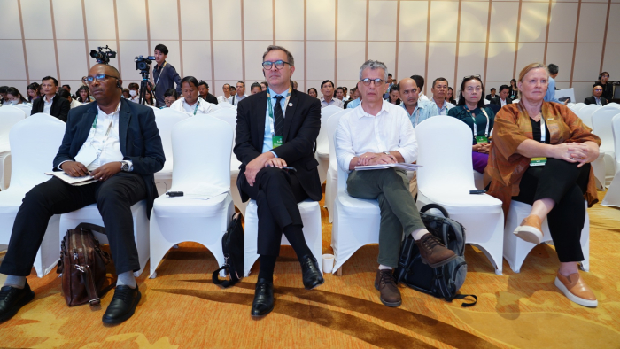 ទិដ្ឋភាពនៃកិច្ចពិភាក្សាទូទៅនៃតម្រូវការវិនិយោគ និងកាលានុវត្តភាពសម្រាប់៖ ស្រូវអង្ករ ស្វាយចន្ទី​ និងស្វាយ​ នាព្រឹកថ្ងៃទី១៤​ ខែវិច្ឆិកា​ ឆ្នាំ២០២៥​ នៃវេទិកា និងពិព័រណ៍កសិកម្មកម្ពុជា (CAFE25)