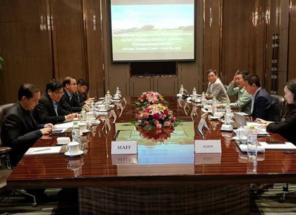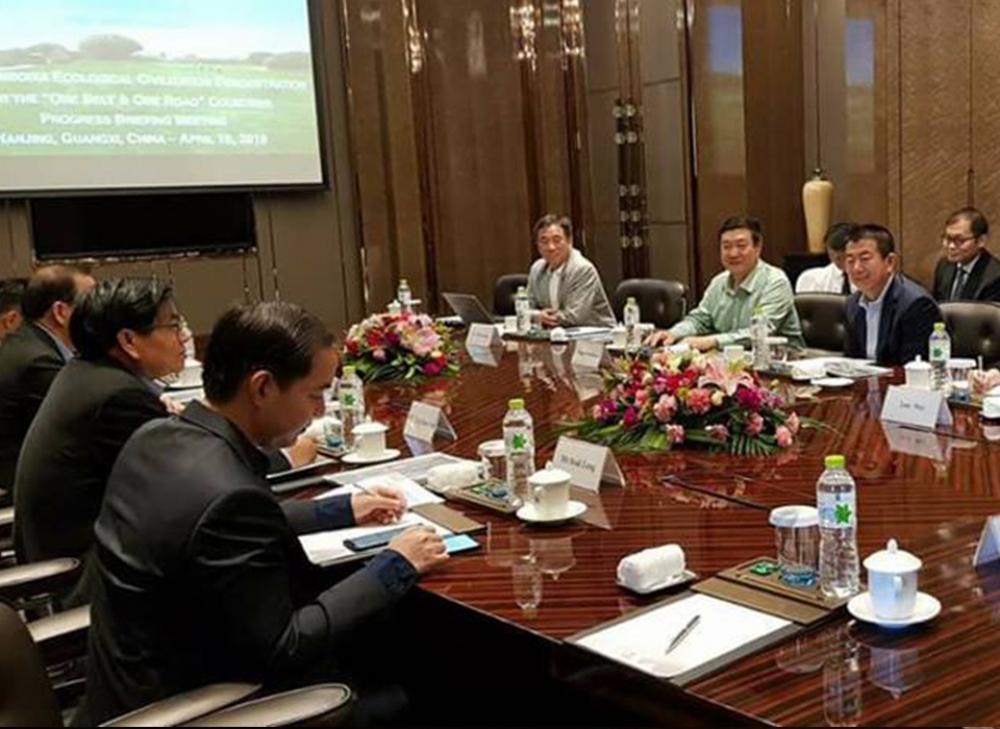 រសៀលថ្ងៃច័ន្ទ ២កើត ខែពិសាខ ឆ្នាំច ព.ស២៥៦២ ត្រូវនឹងថ្ងៃទី១៦ ខែមេសា ឆ្នាំ២០១៨ នៅសណ្ឋាគារវ៉ាន់ដាវីស្តា ទីក្រុងណាន់នីង ខេត្តហ្គាងស៊ី សាធារណរដ្ឋប្រជាមានិតចិន លោក Wang Wenbiao ប្រធានក្រុមប្រឹក្សាភិបាលក្រុមហ៊ុន E-Lion Resource Group បានរៀបចំកិច្ចប្រជុំស្វាគមន៍ដំណើរទស្សនកិច្ចរបស់ ឯកឧត្តមរដ្ឋមន្រ្តី វេង សាខុន មកកាន់ប្រទេសចិន និងដើម្បីរាយការណ៍ពីវឌ្ឍនៈភាពនៃការសិក្សាបុរេសមិទិ្ធលទ្ធភាពគម្រោង ស្តារព្រៃឈើនិងឧទ្យានអេកូឡូស៊ីឡើងវិញរួមគ្នានៅកម្ពុជា។ គួររំឭកថានៅថ្ងៃទី០៩ ខែមីនា ឆ្នាំ២០១៨ កន្លងមក នៅក្រសួងកសិកម្ម រុក្ខាប្រមាញ់ និងនេសាទ មានពិធីចុះហត្ថលេខាលើអនុស្សារណយោគយល់គ្នាស្តីពីការរៀបចំសិក្សាសិមិទ្ធិលទ្ធភាពនៃការស្តារព្រៃឈើនិងឧទ្យានអេកូឡូស៊ីឡើងវិញរួមគ្នារវាងក្រសួងកសិកម្ម រុក្ខាប្រមាញ់ និងនេសាទ និងក្រុមហ៊ុន Elian Resource Group។