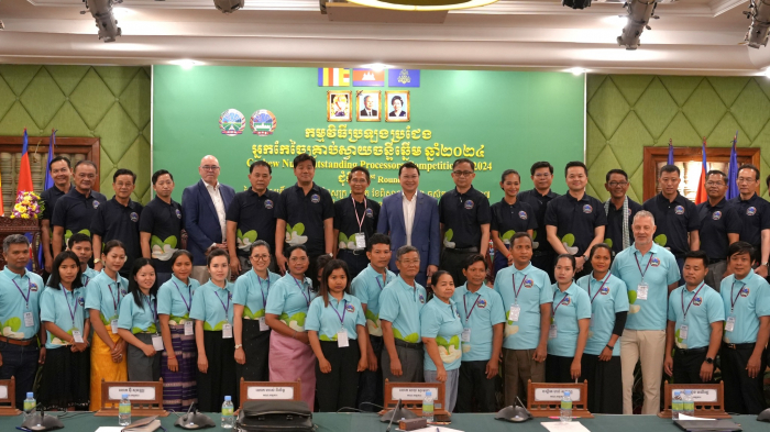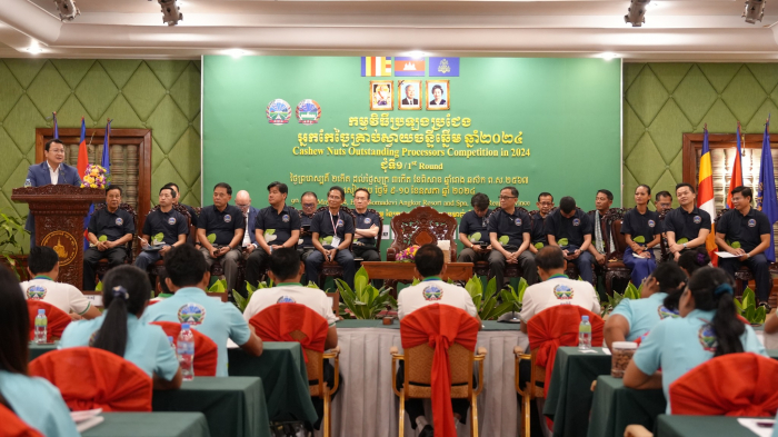 សូមជម្រាបជូនថា កម្មវិធីប្រឡងប្រជែងអ្នកកែច្នៃគ្រាប់ស្វាយចន្ទីឆ្នើម ឆ្នាំ២០២៤ ធ្វើឡើងក្នុងគោលបំណង ផ្សព្វផ្សាយ ស្វែងរកសហគ្រាសកែច្នៃផលិតផលគ្រាប់ស្វាយចន្ទីឆ្នើមបំផុត និងធ្វើការជំរុញ លើកកម្ពស់ការអភិវឌ្ឍវិស័យស្វាយចន្ទី តាមរយៈយន្តការអនុវត្តផលិតកម្មកសិកម្មតាមកិច្ចសន្យា បច្ចេកទេសកែច្នៃគ្រាប់ស្វាយចន្ទី ការវិភាគសេដ្ឋកិច្ច ការប្រកួតប្រជែងទីផ្សារ និងការបន្ថែមរសជាតិលើផលិតផលគ្រាប់ស្វាយចន្ទី។ ការប្រឡងប្រជែង នេះមានសិប្បករចូលរួមចំនួន ២០រូប ហើយដំណើរការនៃការជ្រើសរើសគឺមាន ៣ជុំ ដើម្បីសំរ៉ាំងអ្នកកែច្នៃឆ្នើមចំនួន ៣រូបចុងក្រោយ៕