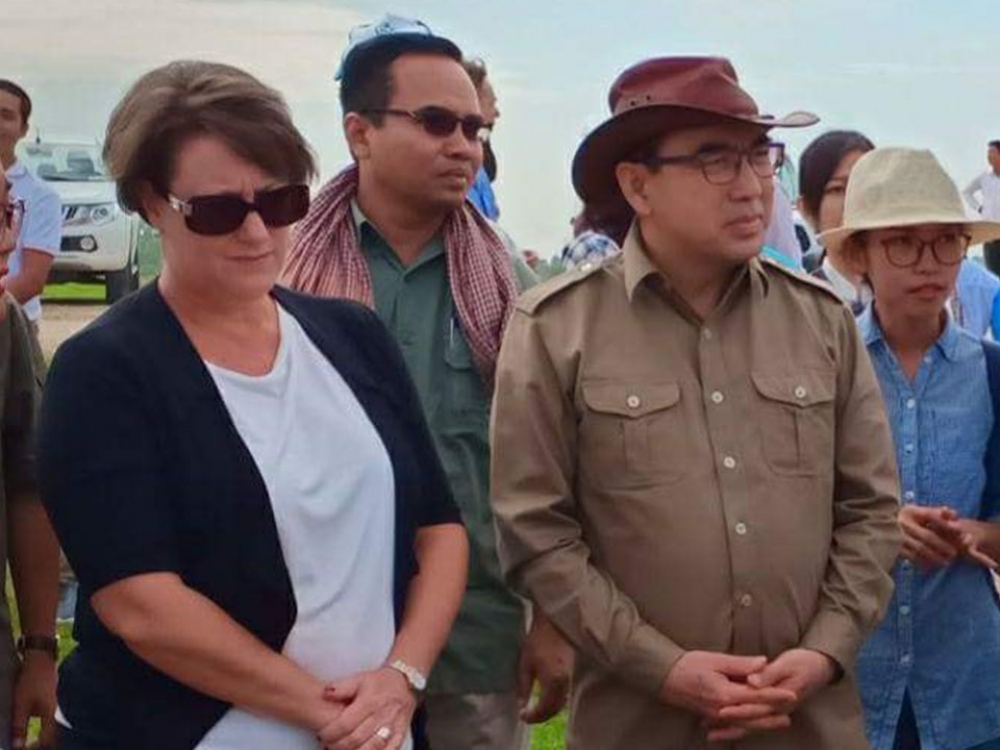 នៅព្រឹកថ្ងៃពុធ ១០រោច ខែពិសាខ ឆ្នាំច សំរឹទ្ធិស័ក ព.ស.២៥៦២ ត្រូវនឹង ថ្ងៃទី៩ ខែឧសភា ឆ្នាំ២០១៨ ឯកឧត្តម វេង សាខុន រដ្ឋមន្រ្តី ក្រសួងកសិកម្ម រុក្ខាប្រមាញ់និងនេសាទ និងសហការី រួមដំណើរដោយលោកជំទាវ Angela Corcoran អគ្គរដ្ឋទូតអូស្រ្តាលីប្រចាំនៅកម្ពុជា បានចុះពិនិត្យមើលធ្វើវឌ្ឍនភាពនៃការធ្វើស្រែបង្ហាញតាមរយៈការធ្វើទំនើបកម្ម និងយន្តូបនីយកម្មកសិកម្ម នៅតំបន់អន្លុងរាជ ឃុំកំពង់ត្របែក ស្រុកកំពង់ត្របែក ខេត្តព្រៃវែង និងពិនិត្យកសិដ្ឋានដាំម្ទេសនៅឃុំព្រែកដំបង ស្រុកមុខកំពូល ខេត្តកណ្តាល។ សូមបញ្ជាក់ថា គោលបំណងជាចម្បងនៃបេសកកម្មនេះគឺធ្វើឡើងដើម្បីពិនិត្យតាម និងជំរុញឲ្យអនុវត្តន៍គោលនយោបាយនៃការធ្វើកំណែទម្រង់លើវិស័យកសិកម្ម របស់ក្រសួងដែលបានដាក់ចេញនាពេលថ្មីៗនេះ ក្នុងការប្រែក្លាយវិស័យកសិកម្ម ឆ្លើយតបទៅតាមកំណើនក្នុងល្បឿនថេរនៃសេដ្ឋកិច្ចកម្ពុជា ដោយត្រូវធ្វើយន្តូបនីយកម្មកសិកម្ម ក្នុងការព្រោះស្រូវជាមួយការជ្រើសពូជសុទ្ធតម្រូវការទីផ្សារ ការពង្រាបដីស្រែ និងការធ្វើឲ្យប្រសើឡើងនៃការគ្រប់គ្រង និងចាត់ចែងទឹក (ចំណាយថវិកាតិចក្នុងការប្រើប្រាស់ និងមានប្រសិទ្ធភាពខ្ពស់) ។ ដំណើរបេសកកម្មនេះត្រូវបានពិនិត្យមើលទ្ធផល និងសកម្មភាពដូចខាងក្រោម៖