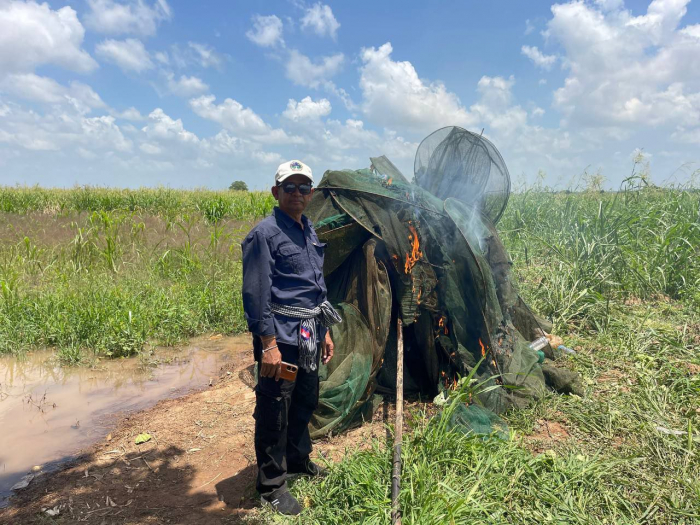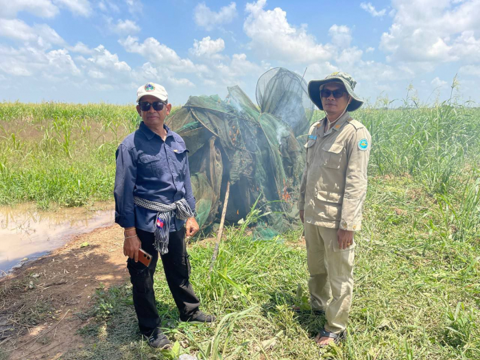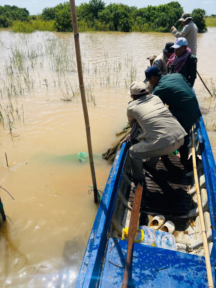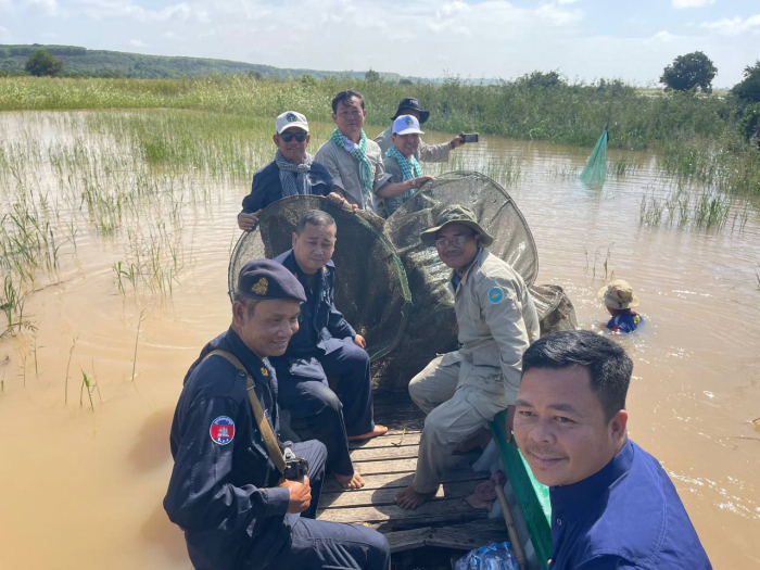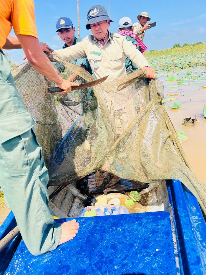 នៅថ្ងៃទី១៥ ខែកក្កដា ឆ្នាំ២០២៥ ឯកឧត្តម ទឹម បូរក្ស អនុរដ្ឋលេខាធិការក្រសួងកសិកម្ម រុក្ខាប្រមាញ់ និងនេសាទ តាមការណែនាំពីឯកឧត្តមរដ្ឋលេខាធិការ ហាស់ សារ៉េត បានដឹកនាំក្រុមការងារ មន្ទីរកសិកម្ម រុក្ខាប្រមាញ់ និងនេសាទខេត្តកំពង់ចាម ខណ្ឌរដ្ឋបាលជលផលកំពង់ចាម សហការជាមួយ អធិការដ្ឋានរដ្ឋបាលជលផលមេគង្គ អាជ្ញាធរស្រុកកំពង់សៀម កងរាជអាវុធហត្ថស្រុកកំពង់សៀម កម្លាំងអធិការដ្ឋាននគរបាលស្រុកកំពង់សៀម អាជ្ញាធរឃុំកៀនជ្រៃ និងកម្លាំងប៉ុស្តិ៍នគរបាលរដ្ឋបាលឃុំកៀនជ្រៃ និងដោយមានការសម្របសម្រួលពីឯកឧត្តម វង្ស ប៊ុនវិសុទ្ធ ព្រះរាជអាជ្ញានៃអយ្យការអមសាលាដំបូងខេត្តកំពង់ចាម បានចុះប្រតិបត្តិការត្រួតពិនិត្យ និងបង្រ្កាបបទល្មើសជលផល រុះរើ និងបំផ្លាញចោលនូវឧបករណ៍ខុសច្បាប់១ចំនួន។