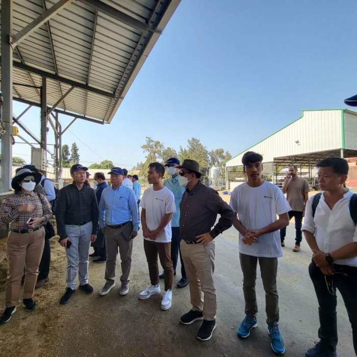 នៅវេលាម៉ោង ១៥:៣០ រសៀលថ្ងៃដដែល អញ្ជើញចេញពីកសិដ្ឋានចិញ្ចឹមត្រី ឯកឧត្តមរដ្ឋមន្ដ្រីនិងសហការី បានបន្តដំណើរមកពិនិត្យកសិដ្ឋានគោទឹកដោះ ដែលក្នុងកសិដ្ឋានមាននិស្សិតកម្ពុជាកំពុងធ្វើកម្មសិក្សាចំនួន ៤នាក់។ ក្មួយ និត សាលិនបានឲ្យដឹងថាក្នុងកសិដ្ឋានមានគោទឹកដោះចំនួន ៧០០ក្បាល អាចផលិតទឹកដោះបាន ២២ ០០០លីត្រ/ថ្ងៃ (៣៨លីត្រ/ក្បាល/ថ្ងៃ)។ ក្មួយ សាលិនបានបន្តថាការរស់នៅ ហូបចុក ក្នុងការសិក្សារៀនសូត្រ និងការធ្វើកម្មសិក្សា មានលក្ខណល្អប្រសើរ ទាំងការស្នាក់នៅ និងរៀនសូត្រ ជាមួយនឹងទទួលបានប្រាក់ឧបត្ថម្ភបានសមរម្យ។ អ្វីដែលសំខាន់ តាមការសន្ទនារបស់ឯកឧត្តមរដ្ឋមន្រ្តីជាមួយក្មួយៗ ឲ្យដឹងថាអត្ថប្រយោជន៍សំខាន់ពីរយ៉ាងដែលបានមកធ្វើការឆ្វើកម្មសិក្សានៅប្រទេសអ៊ីស្រាអែលគឺទី១- ទទួលបានចំណេះដឹង បទពិសោធន៍ទាំងចំណេះជំនាញ ប្រាកដប្រជាមួយ ក្រោយពេលបញ្ចប់ការសិក្សា និង ទី២- និស្សិតទាំង ៤នាក់ បានបង្ហាញឆន្ទ:ថានឹងនាំយកបទពិសោធន៍ល្អៗនេះទៅកសាងអនាគតខ្លួនឯង និងចូលរួមអភិវឌ្ឍវិស័យកសិកម្មនៅកម្ពុជា។