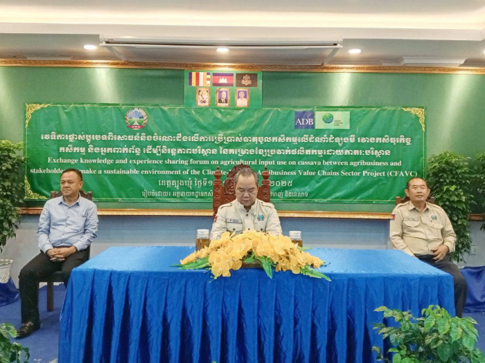 នៅថ្ងៃទី១៣ ខែតុលា ឆ្នាំ២០២៥ ឯកឧត្តម គី ច័ន្ទរំដួល អនុរដ្ឋលេខាធិការក្រសួងកសិកម្ម រុក្ខាប្រមាញ់ និងនេសាទ បានអញ្ជើញជាអធិបតីក្នុងពិធីបិទវេទិកាផ្លាស់ប្តូរបទពិសោធន៍ និងចំណេះដឹងលើការប្រើប្រាស់ធាតុចូលកសិកម្មលើដំណាំដំឡូងមី រវាងកសិធុរកិច្ច និងអ្នកពាក់ព័ន្ធ ដើម្បីនិរន្តរភាពបរិស្ថាន នៅសណ្ឋាគារភីអេនធី ផាលេស ត្បូងឃ្មុំ ដែលគាំទ្រដោយគម្រោងខ្សែច្រវាក់ផលិតកម្មដោយភាតរបរិស្ថាននៃក្រសួងកសិកម្ម រុក្ខាប្រមាញ់ និងនេសាទ ដែលមានការចូលរួមពីក្រុមហ៊ុន ហ្គ្រីន ហ្វីត ក្រុមហ៊ុន អាហ្គ្រូ ឃីង និងសហគមន៍កសិកម្មដែលមានដាំដុះដំឡូងមី។