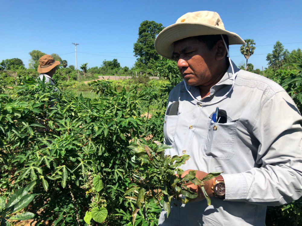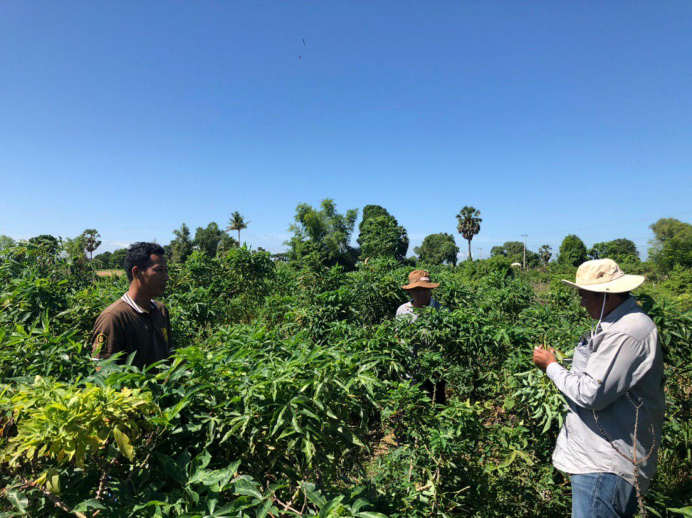 ក្រុមការងារបចេ្ចកទេសរបស់ការិយាល័យការពារដំណាំ នៃនាយកដ្ឋានការពារដំណាំ អនាម័យ និងភូតគាមអនាម័យ សហការជាមួយមន្ត្រីនៃមន្ទីរកសិកម្ម រុក្ខាប្រមាញ់ និងនេសាទខេត្តបន្ទាយមានជ័យ បានចុះពិនិត្យស្ថានភាពជម្ងឺម៉ូសាអ៊ិកដំណាំដំឡូងមី ក្នុងស្រុកចំនួន ៣ នៃខេត្តបន្ទាយមានជ័យ រួមមាន៖