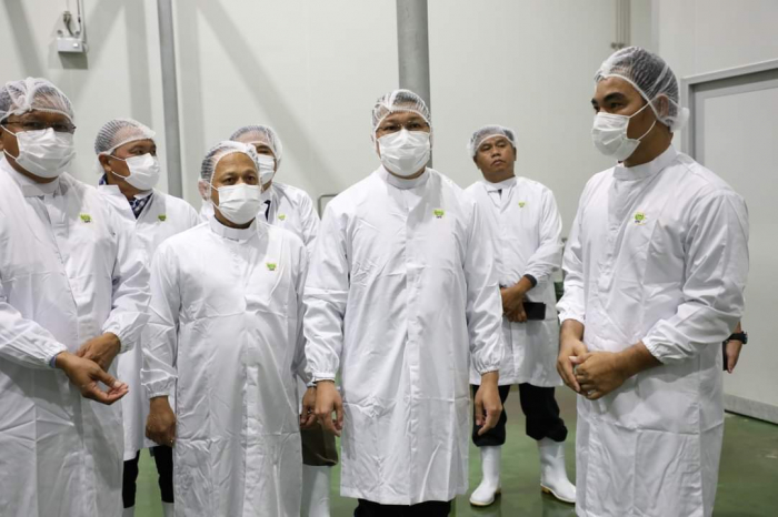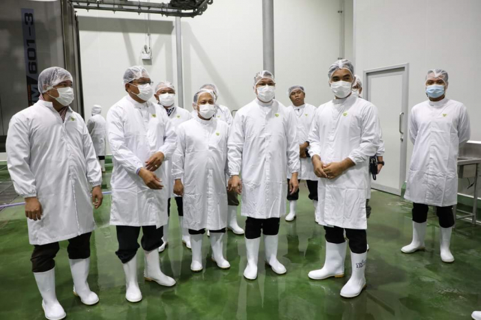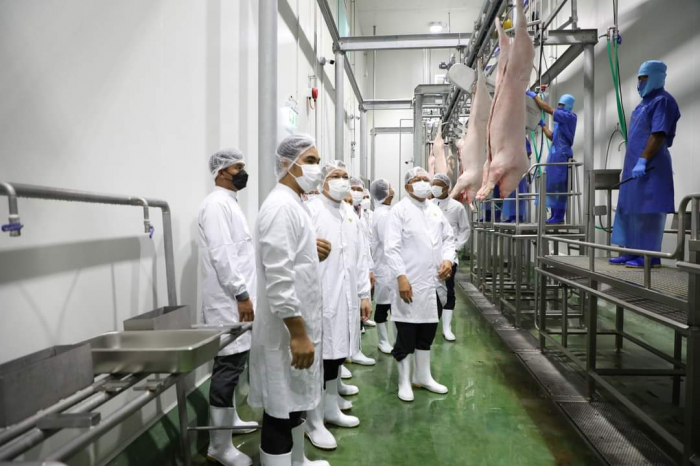 កម្មវិធីទី១៖២៣-វិច្ឆិកា ឆ្នាំ២០២២ (ឃុំជម្ពូវ័ន្ត ស្រុកជុំគិរី ខេត្តកំពត)៖ ឯកឧត្តមរដ្ឋមន្ត្រី ឌិត ទីណា បានចុះពិនិត្យទីសត្តឃាតដ្ឋានទំនើបរបស់ក្រុមហ៊ុន CP Cambodia --------------------------------------------- នាព្រឹកថ្ងៃទី២៣ ខែវិច្ឆិកា ឆ្នាំ២០២២ ឯកឧត្តម ឌិត ទីណា រដ្ឋមន្រ្តីក្រសួងកសិកម្ម រុក្ខាប្រមាញ់ និងនេសាទ អមដំណើរដោយឯកឧត្តមថ្នាក់ដឹកនាំ និងមន្រ្តីជំនាញ បានចុះពិនិត្យរោងចក្រផលិតចំណីអាហារ របស់ក្រុមហ៊ុន CP CAMBODIA ដែលមានទីតាំងនៅឃុំជម្ពូវ័ន្ត ស្រុក ជុំគិរី ខេត្តកំពត ក្នុងគោលបំណងបង្ហាញពីការយកចិត្តទុកដាក់របស់ក្រសួងជាមួយការវិនិយោគរបស់វិស័យឯកជន លើការពង្រឹងគុណភាពផលិតកម្ម ដើម្បីផ្គត់ផ្គង់សាច់សត្វនៅលើទីផ្សារតាមតម្រូវការ។ បន្ទាប់ពីបានចុះទស្សនា និងស្តាប់ការបង្ហាញរបស់តំណាងក្រុមហ៊ុន CP Cambodia ឯកឧត្តមរដ្ឋមន្ត្រី បានស្នើឱ្យក្រុមហ៊ុននេះផ្សព្វផ្សាយដល់កសិដ្ឋានចិញ្ចឹមជ្រូក និងមាន់ទាំងអស់អំពីគោលនយោបាយអនុគ្រោះថ្លៃភ្លើងដែលរាជរដ្ឋាភិបាលបានអនុម័តសម្រាប់ការងារកសិកម្ម និងការប្រើប្រាស់ភ្លើងនៅពេលយប់។ ឯកឧត្តមបានបន្ថែមទៀតថា កិច្ចសហការរវាងក្រុមហ៊ុន និងសមាគមន៍អ្នកចិញ្ចឹមសត្វ មានភាពចាំបាច់ណាស់ ដើម្បីវាយតម្លៃទីផ្សារ និងរៀបចំផែនការផលិត ទាំងតម្រូវការ និងការផ្គត់ផ្គង់សាច់សត្វនៅលើទីផ្សារ។ អគ្គនាយកដ្ឋានសុខភាពសត្វ និងផលិតកម្មសត្វ ត្រូវចូលរួមពិនិត្យមើលលើការងារនេះឱ្យបានល្អប្រសើរ ជាពិសេសក្នុងខ្សែច្រវ៉ាក់ផលិតកម្ម និងគុណភាពនៃសាច់សត្វ។ ក្នុងស្ថានភាពបច្ចុប្បន្ន ក្រុមហ៊ុនគួរណែនាំដល់កសិដ្ឋានដែលបានចុះកិច្ចសន្យាចិញ្ចឹមជាមួយគ្នា គួរកុំទាន់ឱ្យបង្កើនរោងចក្រថ្មី ដើម្បីបញ្ចៀសឱ្យបាននូវការផ្គត់ផ្គង់លើសសតម្រូវការទីផ្សារ។ ឯកឧត្តមបានបញ្ជាក់បន្ថែមទៀតថា ទាក់ទងទៅនឹងសាច់ជ្រូក ដែលចេញពីទីសត្តឃាតរបស់ក្រុមហ៊ុនCP ក្រុមហ៊ុនគួរតែធ្វើទំនាក់ទំនងជាមួយ ផ្សារទំនើប ភោជនីយដ្ឋាន ដើម្បីធានានូវទីផ្សារផ្គត់ផ្គង់ដែលមាននិរន្ដរភាព៕