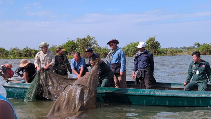 ឯកឧត្ដមអនុរដ្ឋលេខាធិការ ទឹម បូរក្ស ដឹកនាំក្រុមការងារចុះស្រាវជ្រាវ ត្រួតពិនិត្យ ទប់ស្កាត់និងបង្ក្រាបបទល្មើសជលផល នៅចំណុចព្រែកផ្លូវក្របី ភូមិព្រៃកន្លោង ខេត្តព្រៃវែង