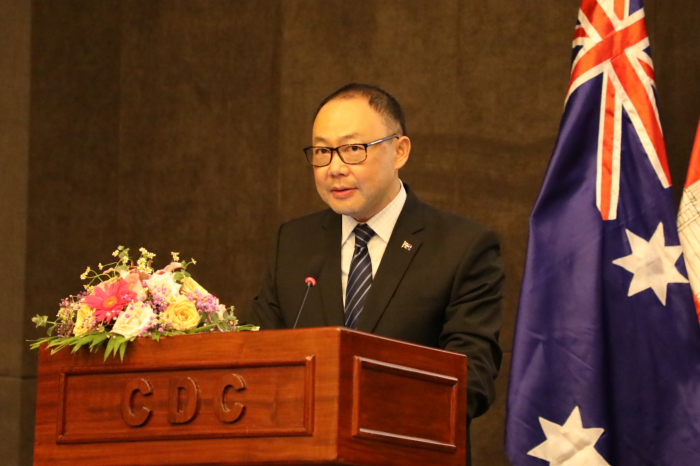 នៅវេលាម៉ោង ១៦:០០ រសៀលថ្ងៃដដែល ឯកឧត្តមរដ្ឋមន្ត្រី វេង សាខុន បានអញ្ជើញទៅចូលរួម ជាអធិបតីរួមជាមួយឯកឧត្តម សុខ ចិន្តាសោភា រដ្ឋមន្រ្តីប្រតិភូអមនាយករដ្ឋមន្រ្តី អគ្គលេខាក្រុម ប្រឹក្សាអភិវឌ្ឍន៍កម្ពុជា និងឯកឧត្តម Pablo Kang ឯកអគ្គរាជទូតអូស្រ្តាលីប្រចាំកម្ពុជា ក្នុងពិធីប្រកាសដាក់ឲ្យប្រើប្រាស់ឧបករណ៍ផ្សព្វផ្សាយរបស់តុវិនិយោគកសិ-ចំណីអាហារ ដែលរៀបចំនៅទីស្តីការក្រុមប្រឹក្សាអភិវឌ្ឍន៍កម្ពុជា។ ពិធីនេះបានរៀបចំឡើងដោយក្រុមប្រឹក្សាអភិវឌ្ឍន៍កម្ពុជា សហការជាមួយក្រសួងកសិកម្ម ក្រសួងកសិកម្ម រុក្ខាប្រមាញ់ និងនេសាទ ស្ថានឯកអគ្គរាជទូតអូស្រ្តាលី តាមរយ: AusAid, CAVAC and Agri-food Investment Dest (AfiD)។ ពិធីក៏មានវត្តមានឯកឧត្តមឯកអគ្គរាជទូត រដ្ឋទូត លោកឧកញ៉ា អ្នកឧកញ៉ា លោក លោកស្រីជានាយកក្រុមហ៊ុនដែលឈានមុខក្នុងវិស័យកសិ-ចំណីអាហារ និងវិស័យឯកជនជាច្រើនទៀត។ ជាបឋម ឯកឧត្តមរដ្ឋមន្ត្រីបានសម្តែងការគាំទ្រនូវមតិរបស់ឯកឧត្តម សុខ ចិន្តាសោភា និងឯកឧត្តម PABLO KANG ដែលបានបង្ហាញពីជោគជ័យនៃកិច្ចសហប្រតិបត្តិការប្រកបដោយផ្លែផ្កា រួមទាំងការជួយគាំទ្រពីរដ្ឋាភិបាលអូស្ត្រាលីក្នុងការបង្កើតនូវយន្តការសម្របសម្រួលតុវិនិ យោគលើវិស័យកសិ-ចំណីអាហារ។ ព្រមជាមួយគ្នា លោកបានវាយតម្លៃខ្ពស់ចំពោះកិច្ចសហការយ៉ាងល្អប្រសើរពីគ្រប់ដៃគូពាក់ព័ន្ធ ពិសេសក្រុមប្រឹក្សាអភិវឌ្ឍន៍កម្ពុជា និងស្ថានទូតអូស្ត្រាលីដែលបានគាំទ្រទាំងបច្ចេកទេស និងធនធានហិរញ្ញវត្ថុក្នុងការលើកកម្ពស់ការវិនិយោគក្នុងវិស័យកសិកម្ម និងកសិ-ឧស្សាហកម្ម។ ឯកឧត្តមរដ្ឋមន្ត្រីបានបង្ហាញឆន្ទ:ចូលរួមអបអរសាទ និងគាំទ្រក្នុងពិធី “ប្រកាសឱ្យប្រើប្រាស់នូវឧបករណ៍ផ្សព្វផ្សាយរបស់តុវិនិយោគកសិ-ចំណីអាហារ” នាពេលនេះ ហើយលោកសង្ឃឹមថាកិច្ចដំណើរការនេះប្រាកដជានឹងផ្តល់ផលមកវិញនូវកំណើននៃការវិនិយោគលើវិស័យកសិ-ចំណីអាហារ ព្រមទាំងចូលរួមចំណែកដល់ការអនុវត្តគោលនយោ បាយអភិវឌ្ឍន៍ឧស្សាហកម្មកម្ពុជាឆ្នាំ២០១៥-២០២៥ គោលនយោបាយជាតិអភិវឌ្ឍន៍វិស័យកសិកម្ម ឆ្នាំ២០២២-២០៣០ និងផែនការយុទ្ធសាស្រ្តអភិវឌ្ឍន៏កសិ-ឧស្សាហកម្មកម្ពុជាឆ្នាំ២០១៩-២០៣០ ផងដែរ។ ឯកឧត្តមរដ្ឋមន្ត្រីបានរំលេចជូនអង្គពិធិឲ្យឃើញថា វិស័យកសិកម្មបាននិងកំពុងមានការអភិវឌ្ឍ ដោយបានផលិតស្បៀងលើសពីសេចក្តីត្រូវការក្នុងស្រុក ហើយកំពុងជំរុញគាំទ្រ និងលើកទឹកចិត្តដល់វិស័យឯកជន និងដៃគូអភិវឌ្ឍន៍នានាវិនិយោគលើការកែច្នៃ ដើម្បីធានានូវនិរន្តរភាពនៃការ ប្រើប្រាស់វត្ថុធាតុដើមក្នុងស្រុក បង្កើនតម្លៃបន្ថែម លើកកម្ពស់គុណភាព ស្តង់ដារអនាម័យ សុវត្ថិភាព និងបង្កើនភាពប្រកួតប្រជែង។ ព្រមជាមួយគ្នា យើងក៏ទទួលស្គាល់ថាវិស័យឯកជន នៅជួបប្រទះបញ្ហាប្រឈមដែលត្រូ