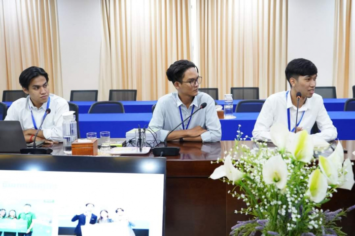 ឯកឧត្តមរដ្ឋមន្ត្រី ឌិត ទីណា ទទួលជួបសម្តែងការគួរសមជាមួយក្រុមនិស្សិតដែលកំពុងអនុវត្តគម្រោងប្រើប្រាស់បច្ចេកវិទ្យាក្នុងការចិញ្ចឹមត្រីហៅកាត់ថា "FlexFloc"