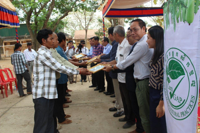 ពិធីចុះបញ្ជីចម្ការ និងការបិទរូបសញ្ញានៃការអនុវត្តកសិកម្មល្អកម្ពុជា (CamGAP Farm and Logo) ជូនដល់កសិករនៅខេត្តត្បូងឃ្មុំ
