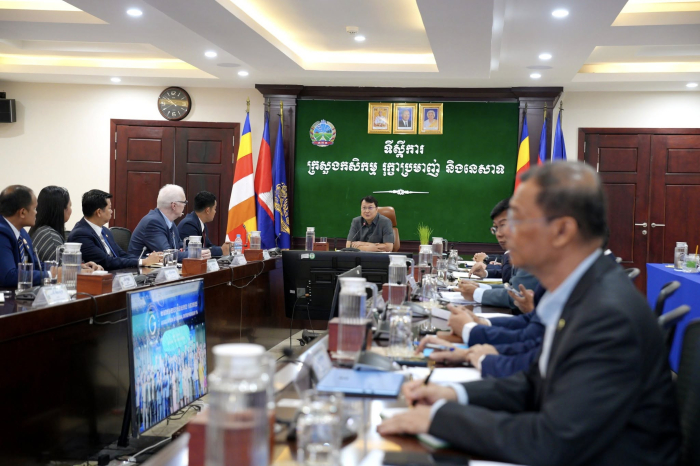 នាព្រឹកថ្ងៃទី៣ ខែធ្នូ ឆ្នាំ២០២៥ ឯកឧត្តម ឌិត ទីណា រដ្ឋមន្រ្តីក្រសួងកសិកម្ម រុក្ខាប្រមាញ់ និងនេសាទ បានអញ្ជើញទទួលជួបជាមួយសមាគមសហគ្រិនសកល ១ភាគរយ ក្នុងជំនួបសម្តែងការគួរសម និងពិភាក្សាការងារអំពីកិច្ចសហប្រតិបត្តិការជ្រាមជ្រែងការវិនិយោគនិងសហគ្រិនភាពក្នុងវិស័យកសិកម្ម កម្ពុជា នៅទីស្តីការក្រសួងកសិកម្ម រុក្ខាប្រមាញ់ និងនេសាទ៕