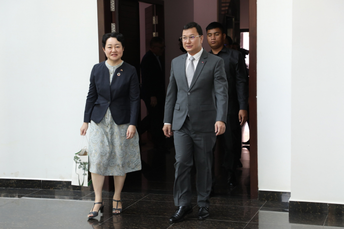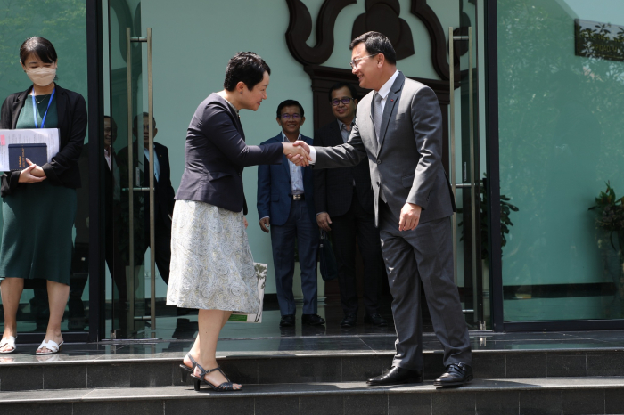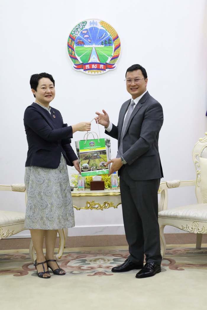 នាព្រឹកថ្ងៃទី០៧ ខែមីនា ឆ្នាំ២០២៣ ឯកឧត្តម ឌិត ទីណា រដ្ឋមន្ត្រី ក្រសួងកសិកម្ម រុក្ខាប្រមាញ់ និងនេសាទ និងថ្នាក់ដឹកនាំ បានទទួលជួបពិភាក្សាការងារជាមួយលោកស្រី KAMEI Haruko ប្រធានតំណាងរបស់ទីភ្នាក់ងារសហប្រតិបត្តិការអន្តរជាតិនៃប្រទេសជប៉ុន (JICA) ប្រចាំនៅកម្ពុជា មុននឹងការបញ្ចប់អាណត្តិនៅកម្ពុជា។