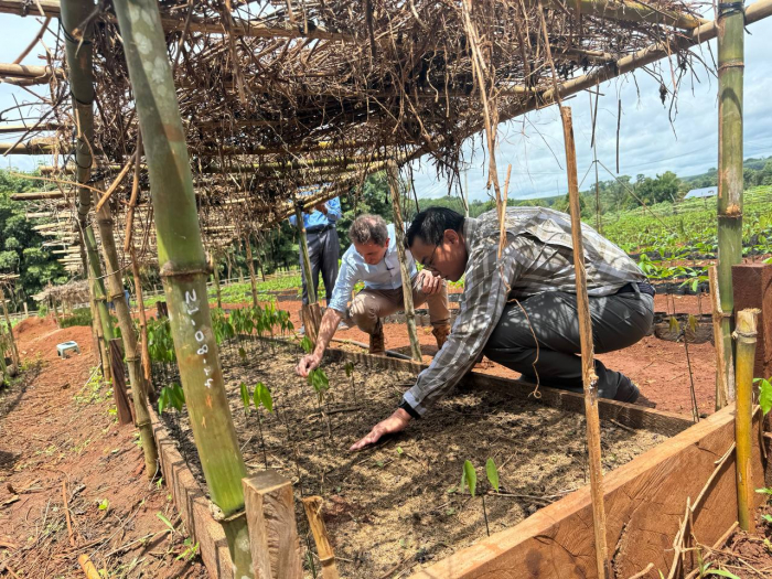 នាព្រឹក ថ្ងៃទី១៣ ខែកញ្ញា ឆ្នាំ២០២៤ ឯកឧត្តម ប្រាក់ ដាវីដ រដ្ឋលេខាធិការក្រសួងកសិកម្ម រុក្ខាប្រមាញ់ និងនេសាទ និងសហការី បានចុះពិនិត្យវឌ្ឍនភាពក្រុមហ៊ុន កូវីផាម៉ា ក្រុមហ៊ុ វ៉ារ៉ាណាស៊ី និងក្រុមហ៊ុន សេដ្ឋិកុលា ស្ថិតនៅក្នុងឃុំប៊ូស្រា ស្រុកពេជ្រាដា ខេត្តមណ្ឌលគិរី។ បេសកកម្មនេះ ធ្វើឡើងក្នុងគោលបំណងពិនិត្យសក្តានុពលនៃក្លូនកៅស៊ូនៅក្នុងចម្ការពិសោធន៍ក្លូនទ្រង់ទ្រាយធំ នៅខេត្តមណ្ឌលគិរី។