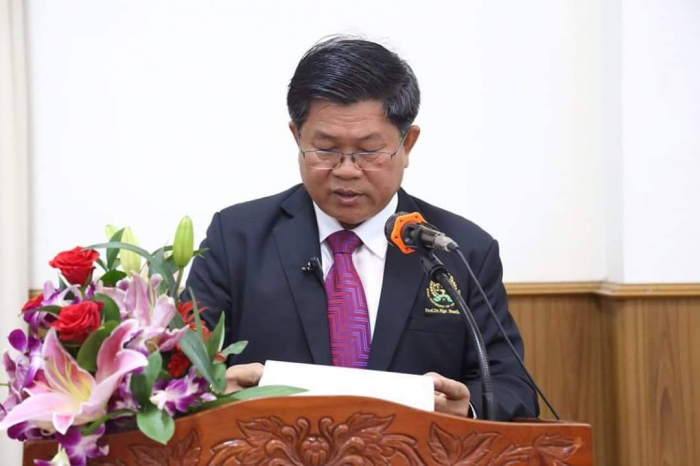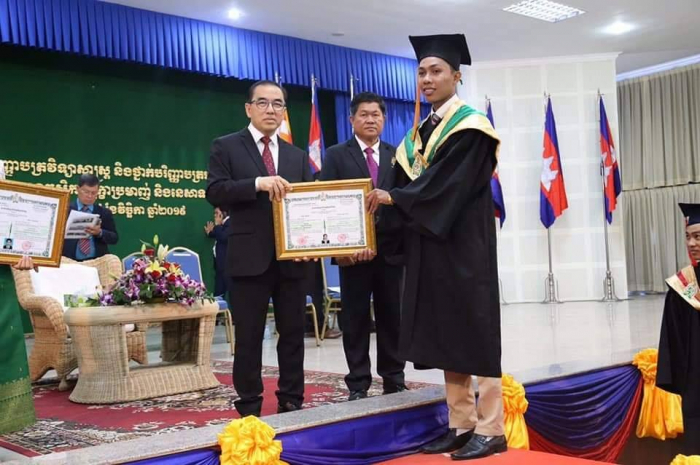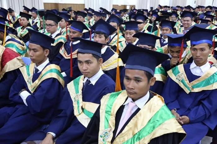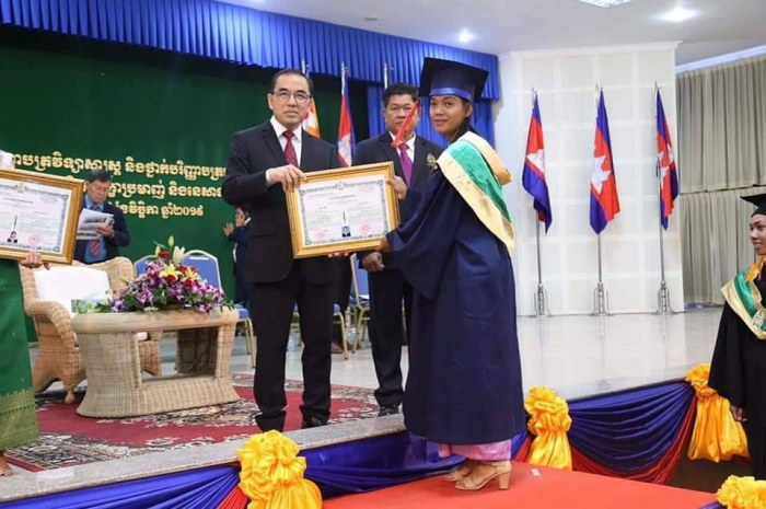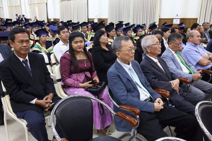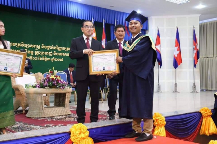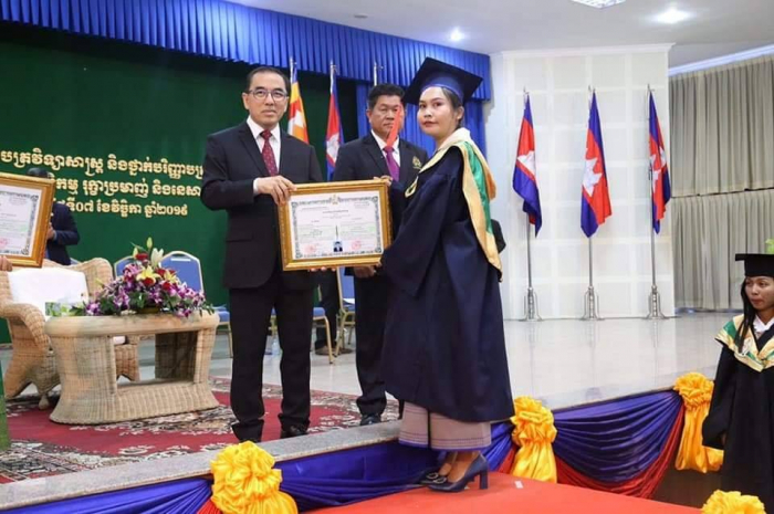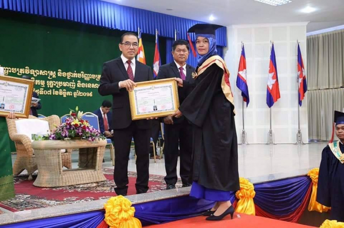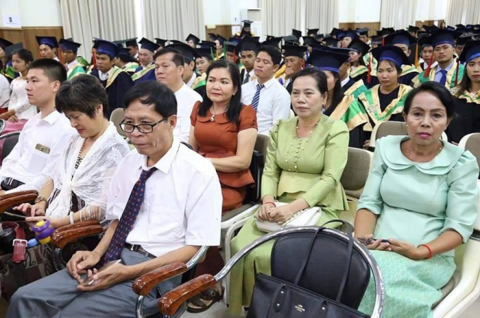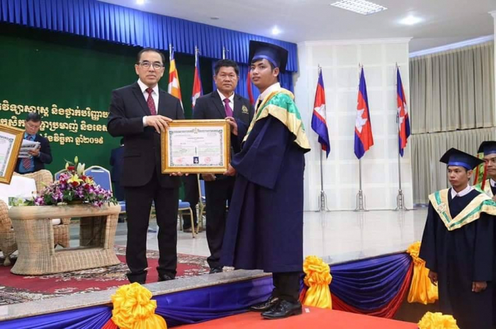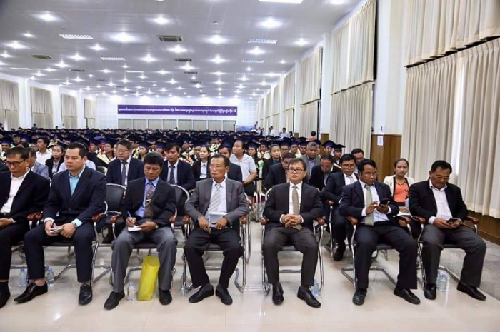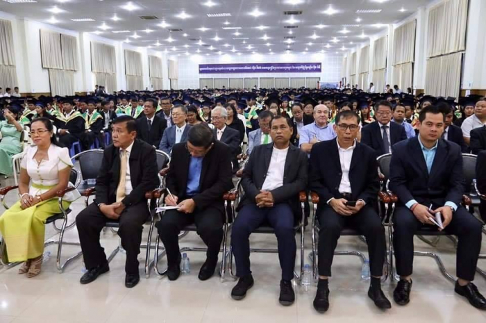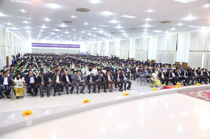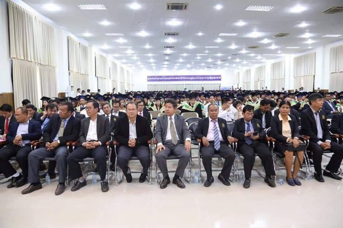 ឆ្លៀតក្នុងឱកាសនេះ ឯកឧត្តមរដ្ឋមន្រ្តីបានចូលរួមអបអរសាទរដោយស្មោះចំពោះក្មួយៗនិស្សិតជ័យលាភីទាំង ១ ០៥៦នាក់ ដែលនឹងត្រូវទទួលសញ្ញាបត្រនាពេលបន្តិចទៀតនេះ។ លទ្ធផលនេះ គឺជាសក្ខីភាពនៃការខិតខំប្រឹងប្រែង រៀនសូត្ររបស់ក្មួយៗនិស្សិតទាំងអស់ ដែលបានព្យាយាមតស៊ូ ទ្រាំទ្ររាល់ការលំបាកគ្រប់បែបយ៉ាងអស់រយៈពេលជាច្រើនឆ្នាំកន្លងមក ហើយផ្លែផ្កានេះ គឺជាស្ពាននៃការចម្លងខ្សែជីវិតរបស់ក្មួយៗ ដើម្បីមានលទ្ធភាពបន្តវិជ្ជាជីវៈ និងកសាងអនាគតភ្លឺស្វាងរបស់ក្មួយៗ នាពេលខាងមុខជាបន្តទៀតប្រកបដោយកិត្តិយស និងសេចក្តីថ្លៃថ្នូរ។ជោគជ័យនេះ មិនត្រឹមតែមានអត្ថន័យជ្រាលជ្រៅសម្រាប់ក្មួយៗនិស្សិតជាជ័យលាភីផ្ទាល់ ក៏ដូចជាក្រុមគ្រួសារ និងសង្គមជាតិទាំងមូលប៉ុណ្ណោះទេ ក៏ប៉ុន្តែវាជាការចូលរួមដោយប្រាកដជាមួយនឹងសមិទ្ធផលជាច្រើនទៀត ដែលរាជរដ្ឋាភិបាលនិងប្រជាជនកម្ពុជាទូទាំងប្រទេសសម្រេចបានប្រកបដោយមោទនភាព។ ទាំងនេះពិតជាបានឆ្លុះបញ្ចាំងយ៉ាងច្បាស់ថា កម្ពុជាយើងបាននិងកំពុងយកចិត្តទុកដាក់ពង្រឹង និងពង្រីកនូវសក្តានុពលធនធានមនុស្សប្រកបដោយសមត្ថភាពខ្ពស់ សម្រាប់ការអភិវឌ្ឍសង្គមសេដ្ឋកិច្ចជាតិ និងរួមចំណែកកាត់បន្ថយភាពក្រីក្ររបស់ប្រជាជនយ៉ាងពិតប្រាកដ។