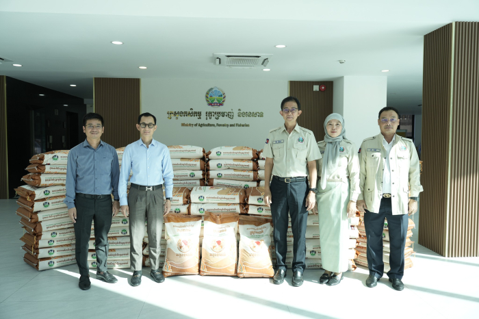 នាព្រឹកថ្ងៃទី១៩ ខែធ្នូ ឆ្នាំ២០២៥ ឯកឧត្តម អ៊ឹម ស៊ីថុល រដ្ឋលេខាធិការប្រចាំការ និងជាតំណាងដ៏ខ្ពង់ខ្ពស់ ឯកឧត្តម ឌិត ទីណា រដ្ឋមន្រ្តីក្រសួងកសិកម្ម រុក្ខាប្រមាញ់ និងនេសាទ និងជាប្រធានក្រុមការងាររាជរដ្ឋាភិបាលចុះមូលដ្ឋានខេត្តបន្ទាយមានជ័យ បានអញ្ជេីញទទួលអំណោយសម្រាប់ចែកជូនពុកម៉ែបងប្អូនជនភៀសសឹកពី លោកឧកញ៉ា ច័ន្ទ តារា នាយកប្រតិបត្តិនៃក្រុមហ៊ុន លី ហ្វ៊ូដ នៅទីស្តីការក្រសួង។