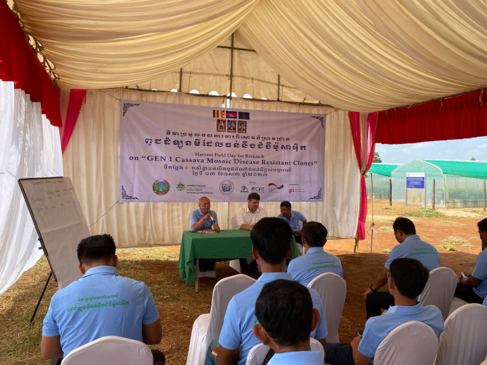 ថ្ងៃពុធ ១៤កើត ខែពិសាខ ឆ្នាំថោះ បញ្ចស័ក ព.ស២៥៦៦ ត្រូវនឹងថ្ងៃទី០៣ ខែឧសភា ឆ្នាំ២០២៣ នាយកដ្ឋានដំណាំឧស្សាហកម្មនៃអគ្គនាយកដ្ឋានកសិកម្ម បានសហការជាមួយមជ្ឈមណ្ឌលអន្តរជាតិសម្រាប់កសិកម្មតំបន់ត្រូពិច (CIAT) ក្រោមការអនុវត្តគម្រោងដំណោះស្រាយប្រកបដោយនិរន្តរភាពលើជំងឺដំណាំដំឡូងមីតំបន់អាស៊ីអាគ្នេយ៍ ដោយមានការគាំទ្រថវិកាពីមជ្ឈមណ្ឌលអូស្រ្តាលីសម្រាប់ការងារស្រាវជ្រាវកសិកម្មអន្តរជាតិ (ACIAR) រៀបចំទិវាប្រមូលផលចម្ការពិសោធន៍ស្រាវជ្រាវពូជដំឡូងមីធន់នឹងជំងឺម៉ូសាអ៉ិក (mosaic) នៅកសិដ្ឋានផលិតពូជដំណាំតំបន់ដីខ្ពស់ចម្ការលើ។