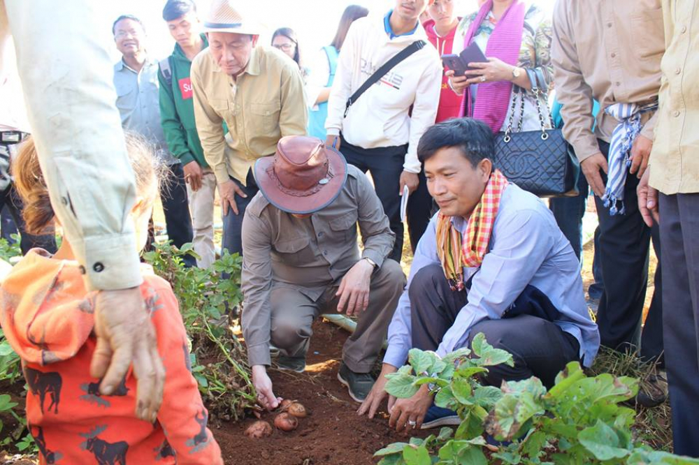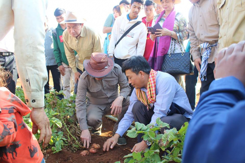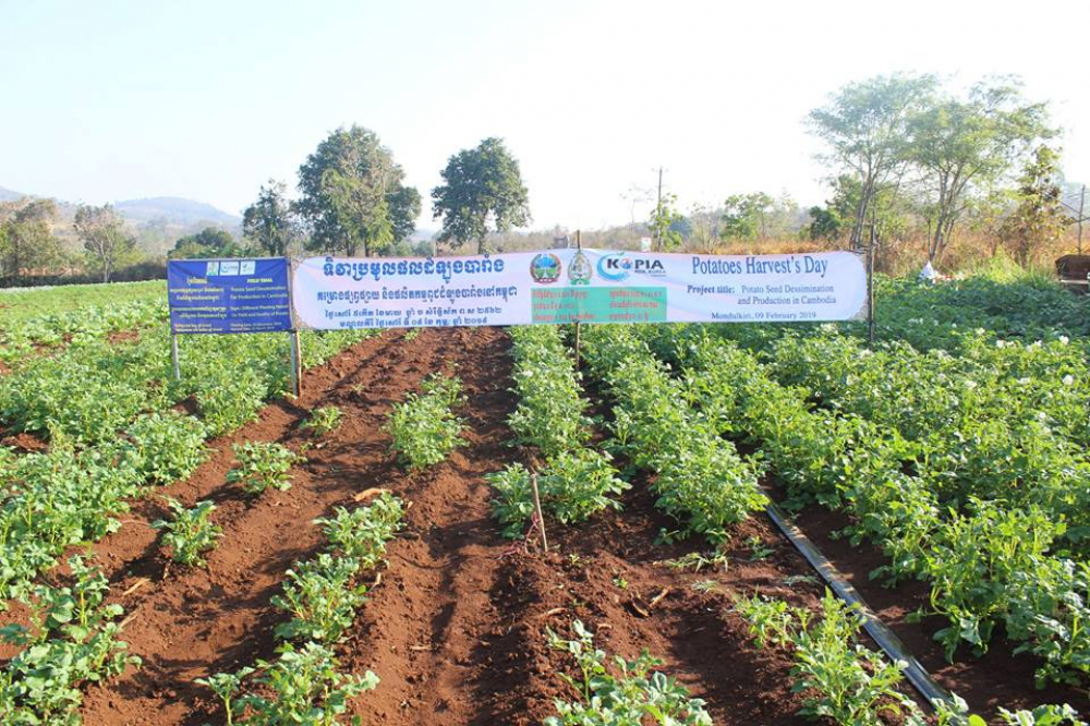 នាព្រឹកថ្ងៃសៅរ៍ ៥កើត ខែមាឃ ឆ្នាំច សំរឹទ្ធិស័ក ព.ស.២៥៦២ ត្រូវនឹងថ្ងៃទី០៩ ខែកុម្ភៈ ឆ្នាំ២០១៩ ឯកឧត្តម ងិន ឆាយ ប្រតិភូរាជរដ្ឋាភិបាលកម្ពុជាទទួលបន្ទុកជាអគ្គនាយកនៃអគ្គនាយកដ្ឋានកសិកម្ម បានអមដំណើរឯកឧត្តម វេង សាខុន រដ្ឋមន្ត្រីក្រសួងកសិកម្ម រុក្ខាប្រមាញ់ និងនេសាទ ចូលរួមក្នុងទិវាប្រមូលផលចម្ការដំឡូងបារាំង ក្រោមគម្រោងផ្សព្វផ្សាយពូជនិងផលិតកម្មពូជដំឡូងបារាំងនៅកម្ពុជា ដែលសហការអនុវត្តដោយសាកលវិទ្យាល័យភូមិន្ទកសិកម្ម និងមន្ទីរកសិកម្ម រុក្ខាប្រមាញ់ និងនេសាទខេត្តមណ្ឌលគិរី ដោយមានកិច្ចសហការគាំទ្រពីដៃគូអភិវឌ្ឍន៍ KOPIA ប្រទេសកូរ៉េ។ អញ្ជើញជាអធិបតីអមដំណើរឯកឧត្តមរដ្ឋមន្ត្រីក្នុងពិធីនោះរួមមាន ឯកឧត្តមអភិបាលនៃគណៈអភិបាលខេត្តមណ្ឌលគិរី ឯកឧត្តម លោកប្រធានអង្គភាពពាក់ព័ន្ធក្រោមឱវាទក្រសួងកសិកម្ម រុក្ខាប្រមាញ់ និងនេសាទ និងប្រជាកសិករដែលមានចំណាប់អារម្មណ៍ក្នុងផលិតកម្មដំឡូងបារាំង។ ទិវាខាងលើត្រូវបានអនុវត្តនៅចម្ការរបស់កសិករឈ្មោះ គ្រី ម៉េងឈាង នៅភូមិចំការតែ សង្កាត់ស្ពានមានជ័យ ក្រុងសែនមនោរម្យ ខេត្តមណ្ឌលគិរី។ សូមបញ្ជាក់ជូនផងដែរថា ចំពោះការពិសោធន៍សាកល្បងលើផលិតកម្មដំណាំ ដំឡូងបារាំងនៅក្នុងខេត្តមណ្ឌលគិរីនេះគឺអគ្គនាយកដ្ឋានកសិកម្មបានអនុវត្តដាំដុះពិសោធន៍សាកល្បងនៅក្នុងឆ្នាំ២០១៦ និង២០១៧ ដោយមានការគាំទ្រពី AFACI-Korea។ នៅក្នុងឆ្នាំដំបូង(២០១៦) ការពិសោធន៍សាកល្បងនេះមិនបានទទួលលទ្ធផលល្អឡើយដោយសារមានការបំផ្លាញពីសត្វល្អិតចង្រៃ។ ដោយឡែកនៅក្នុងឆ្នាំ២០១៧ ការពិសោធន៍ទទួលបានផលល្អ ដូចខាងក្រោម៖ ប្រភេទពូជ PO3 ទទួលបាន ១៥,៧៧ តោន/ហិកតា,ប្រភេទពូជ Altantic ទទួលបាន ១៣,៨៧ តោន/ហិកតា និងប្រភេទពូជ Salora ទទួលបាន ១១,៧២ តោន/ហិកតា។ គម្រោងដាំដុះពិសោធន៍សាកល្បងដូចគ្នានឹងគម្រោងរបស់សាកលវិទ្យាល័យភូមិន្ទកសិកម្ម ដែលគាំទ្រដោយ KOPIA ប្រទេសកូរ៉េ។ សម្រាប់ឆ្នាំ២០១៨-២០១៩ នេះ AFACI បានបញ្ឈប់ការគាំទ្រគម្រោងដាំដុះសាកល្បងជាមួយអគ្គនាយកដ្ឋានកសិកម្ម។ ដោយការពិសោធន៍ទទួលបានលទ្ធផលល្អប្រសើរអាចទទួលយកបាន និងតាមអនុសាសន៍ណែនាំរបស់ថ្នាក់ដឹកនាំក្នុងពេលចុះទស្សនៈកិច្ចចម្ការបន្លែរបស់លោក គ្រី ម៉េងឈាង មន្ត្រីបង្គោលអនុវត្តគម្រោងរបស់អគ្គនាយកដ្ឋានកសិកម្ម បានបន្តផ្តល់ពូជដំឡូងបារាំងចំនួន២ពូជ គឺពូជ PO3 and PO7 ក្នុងមួយមុខ ១០០០ គ្រាប់ ដល់លោក គ្រី ម៉េងឈាង ក្នុងការដាំសាកល្បងនៅទីវាលផ្ទាល់។