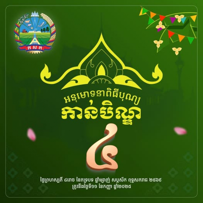 សូមអនុមោទនា ពិធីកាន់បិណ្ឌ ៤ ថ្ងៃព្រហស្បតិ៍ ៤រោច ខែភទ្របទ ឆ្នាំម្សាញ់ សប្តស័ក ពុទ្ធសករាជ ២៥៦៩ ត្រូវនឹងថ្ងៃទី១១ ខែកញ្ញា ឆ្នាំ២០២៥