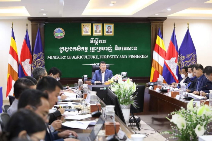 ឯកឧត្តម ឌិត ទីណា រដ្ឋមន្ត្រី ក្រសួងកសិកម្ម រុក្ខាប្រមាញ់ និងនេសាទ ដឹកនាំប្រជុំពិភាក្សាលើផែនការពង្រាងសម្រាប់ការរៀបចំសន្និបាតបូកសរុបការងារកសិកម្ម រុក្ខាប្រមាញ់ និងនេសាទ សម្រាប់ឆ្នាំ២០២២ និងលើកទិសដៅឆ្នាំ២០២៣ ====================== នារសៀលថ្ងៃអង្គារ ទី០៧ ខែកុម្ភៈ ឆ្នាំ២០២៣ នៅទីស្តីការ ក្រសួងកសិកម្ម រុក្ខាប្រមាញ់ និងនេសាទ បានរៀបចំកិច្ចប្រជុំពិភាក្សាលើផែនការសម្រាប់ការរៀបចំសន្និបាតបូកសរុបការងារកសិកម្ម រុក្ខាប្រមាញ់ និងនេសាទ ក្រោមអធិបតីភាព ឯកឧត្តម ឌិត ទីណា រដ្ឋមន្ត្រី ក្រសួងកសិកម្ម រុក្ខាប្រមាញ់ និងនេសាទ ដោយមានការអញ្ជើញចូលរួមពីថ្នាក់ដឹកនាំពាក់ព័ន្ធផ្សេងទៀតផងដែរ។ ក្នុងកិច្ចប្រជុំនេះ ឯកឧត្តម បានពិនិត្យមើលលម្អិតលើផែនការពង្រាងដែលបានរៀបចំ និងបានផ្តល់អនុសាសន៍កែសម្រួលនូវចំណុចមួយចំនួនដើម្បីធានាឱ្យដំណើរការសន្និបាត ប្រព្រឹត្តទៅបានយ៉ាងរលូន និងទទួលបានផ្លែផ្កា។ សម្រាប់សន្និបាទបូកសរុបការងារកសិកម្ម រុក្ខាប្រមាញ់ និងនេសាទ សម្រាប់ឆ្នាំ២០២២ និងលើកទិសដៅឆ្នាំ២០២៣ ដែលគ្រោងនឹងរៀបចំនាពេលឆាប់ៗនេះ ឯកឧត្តមរដ្ឋមន្ត្រី សង្ឃឹមថានឹងទទួលបានធាតុចូលដែលរួមចំណែកក្នុងការអភិវឌ្ឍ និងដោះស្រាយបញ្ហាក្នុងវិស័យកសិកម្ម ពីបណ្តាក្រសួងឬស្ថាប័នពាក់ព័ន្ធផ្សេងៗទៀត ដូចជា ក្រសួងសេដ្ឋកិច្ច និងហិរញ្ញវត្ថុ ក្រសួងធនធានទឹក និងឧតុនិយម ក្រសួងអភិវឌ្ឍន៍ជនបទ និងក្រសួងពាណិជ្ជកម្ម សម្រាប់រៀបចំផែនការអនុវត្តនៅឆ្នាំបន្តទៀត៕