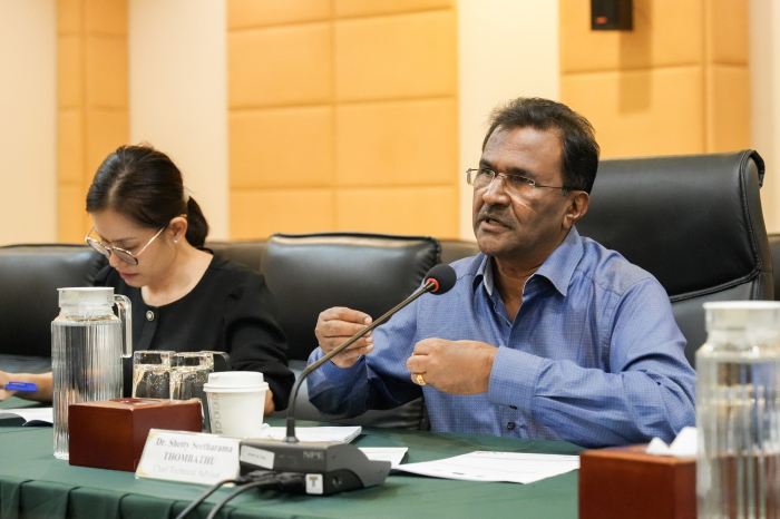 នៅក្នុងកិច្ចប្រជុំដែលរៀបចំធ្វើនៅទីស្ដីការក្រសួងកសិកម្ម រុក្ខាប្រមាញ់ និងនេសាទ លោកជំទាវ បានអរគុណដល់លោកបណ្ឌិត Shetty Seetharama THOMBATHU និងក្រុមការងារបច្ចេកទេស ដែលបានសហការជាមួយក្រសួង ដឹកនាំអ្នកសារព័ត៌មានចំនួន១៩ស្ថាប័ន ចុះធ្វើទស្សនកិច្ចសហគ្រាសកែច្នៃផលិតផលជលផលក្រោយប្រមូលផល ក្រោមគម្រោង CAPFish កាលពីអំឡុងខែកញ្ញា ឆ្នាំ២០២៣។ ដំណើរទស្សនកិច្ចកាលពីខែកញ្ញា ឆ្នាំ២០២៣ បានទទួលជោគជ័យគាប់ប្រសើរ ហើយលោកជំទាវសង្ឃឹមថា ដំណើរទស្សនកិច្ចសម្រាប់អ្នកសារព័ត៌មានដែលនឹងរៀបចំនាពេលខាងមុខនេះ នឹងទទួលបានការចូលរួមកាន់តែផុលផុសពីសំណាក់អ្នកសារព័ត៌មាន ដើម្បីជំរុញការផ្សព្វផ្សាយអំពីផលិផលជលផលក្រោយប្រមូលផលឲ្យសាធារណជនបានស្គាល់និងជួយគាំទ្រ ទាក់ទាញអ្នកវិនិយោគនៅក្នុងវិស័យនេះឲ្យបានកាន់តែច្រើន និងជំរុញការនាំចេញទៅក្រៅប្រទេស។