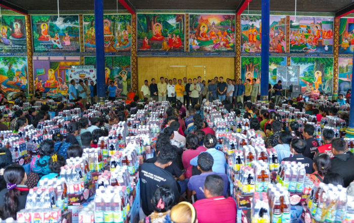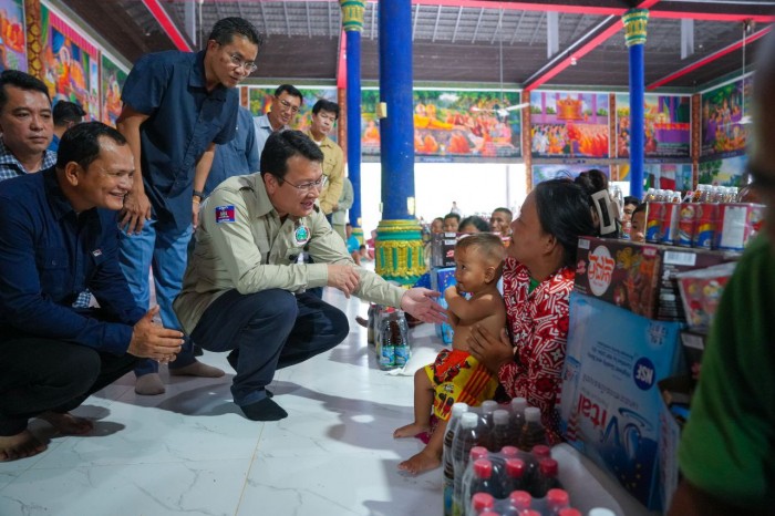 នារសៀលថ្ងៃអង្គារ ទី២៩ ខែកក្កដា ឆ្នាំ២០២៥ ឯកឧត្តមរដ្ឋមន្ត្រី ឌិត ទីណា ប្រធានក្រុមការងារចុះមូលដ្ឋានខេត្តបន្ទាយមានជ័យ អញ្ជើញសួរសុខទុក្ខ និងនាំយកស្បៀងជូនពុកម៉ែ បងប្អូនភៀសសឹកនៅទីតាំងសុវត្ថិភាព វត្តសំបូរសាមគ្គីប្រាសាទមានជ័យ ស្រុកស្វាយចេក ខេត្តបន្ទាយមានជ័យ។
