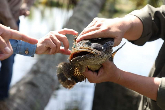 ឯកឧត្តម ឌិត ទីណា រដ្ឋមន្ត្រីក្រសួងកសិកម្ម រុក្ខាប្រមាញ់ និងនេសាទ បានចុះពិនិត្យកសិដ្ឋានចិញ្ចឹមត្រីឆ្ពុង និងត្រីតុកែ មួយកន្លែងនៅឃុំប៉ាក់ខ្លង ស្រុកមណ្ឌលសីមា ខេត្តកោះកុង ------------------------------------------------------------------------ នាព្រឹកថ្ងៃសៅរ៍ ៣កើត ខែមិគសិរ ឆ្នាំខាល ចត្វាស័ក ព.ស.២៥៦៦ ត្រូវនឹងថ្ងៃទី២៦ ខែវិច្ឆិកា ឆ្នាំ២០២២ ឯកឧត្តម ឌិត ទីណា រដ្ឋមន្ត្រីក្រសួងកសិកម្ម រុក្ខាប្រមាញ់ និងនេសាទ និងសហការី បានចុះពិនិត្យកសិដ្ឋានចិញ្ចឹមត្រីឆ្ពុង និងត្រីតុកែ របស់ លោក ឆេង ឈុន និងជាប្រធានបណ្តុំអាជីវកម្ម នៅឃុំប៉ាក់ខ្លង ស្រុកមណ្ឌលសីមា ខេត្តកោះកុង។ លោក ឆេង ឈុន បានអនុវត្តការចិញ្ចឹមត្រីក្នុងបែ និងស្រះតាំងពីឆ្នាំ២០០២មក ហើយបច្ចុប្បន្ន លោកទទួលបានការគាំទ្របន្ថែមពីកម្មវិធីASPIRE បានធ្វើឲ្យអាជីវកម្មរបស់គាត់កាន់តែរីកចម្រើនបន្ថែមទៀត។ ឯកឧត្តមរដ្ឋមន្រ្តីបានធ្វើការកោតសរសើរដល់ លោក ដែលចេះគិតគូរពីផែនការចិញ្ចឹមត្រី និងសិក្សាពីតម្រូវការទីផ្សារបានច្បាស់លាស់ និងទទួលបានជោគជ័យលើទីផ្សារ។ ជាមួយគ្នានេះ ឯកឧត្តម សុំឱ្យកសិករពង្រីកការចិញ្ចឹមត្រីឱ្យបានកាន់តែច្រើនថែមទៀត ហើយរដ្ឋបាលជលផលគួរសិក្សាពីលទ្ធភាពយកពូជត្រីពីមជ្ឈមណ្ឌលស្រាវជ្រាវ និងអភិវឌ្ឍវារីវប្បកម្មសមុទ្រ នៅខេត្តព្រះសីហនុមកបំប៉ននៅកសិដ្ឋាននេះ ព្រមទាំងណែនាំមន្រ្តីជំនាញឱ្យបន្តគាំទ្របច្ចេកទេស និងធ្វើផលិតកម្មតាមតម្រូវការទីផ្សារដើម្បីផ្សព្វផ្សាយពូជត្រីក្នុងស្រុក និងលក់ចែកចាយដល់អ្នកចិញ្ចឹមត្រីផ្សេងទៀត៕