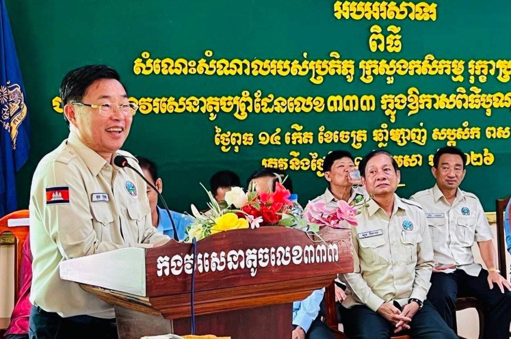នៅព្រឹកថ្ងៃទី១ ខែមេសា ឆ្នាំ២០២៦ ឯកឧត្តម តូច ប៊ុនហួរ រដ្ឋលេខា​ធិការ តំណាងដ៏ខ្ពង់ខ្ពស់ឯកឧត្តម ឌិត ទីណា រដ្ឋមន្រ្តីក្រសួងកសិកម្ម រុក្ខាប្រមាញ់ និងនេសាទ បាន អញ្ជើញដឹកនាំគណៈប្រតិភូស្ថាប័នដៃគូ​សម្ព័ន្ធ​មេត្រីភាពនៃក្រសួងកសិកម្ម រុក្ខាប្រមាញ់ និងនេសាទ ជួប​សំណេះ​សំណាល និងសួរសុខទុក្ខ ថ្នាក់ដឹកនាំនាយទាហាន នាយ​ទាហានរង និងពលទាហាន កងវរសេនាតូចលេខ៣៣៣ នៅទីបញ្ជា​ការ​ដ្ឋាននៃតំបន់ប្រតិបត្តិការសឹករង ខេត្តតាកែវ។
