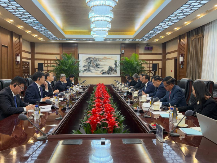 នាព្រឹកថ្ងៃទី ១៨ ខែមីនា ឆ្នាំ ២០២៥ នៅទីស្ដីការក្រសួងកសិកម្មនិងកិច្ចការជនបទចិន ឯកឧត្តម ប្រាក់ ដាវីដ រដ្ឋលេខាធិការក្រសួងកសិកម្ម រុក្ខាប្រមាញ់ និងនេសាទ បានដឹកនាំគណៈប្រតិភូចូលរួមកិច្ចប្រជុំលើកទី១ ស្តីពីច្រករបៀងមច្ឆា និងអង្ករ ជាមួយ ឯកឧត្តម Zhang Zhili អនុរដ្ឋមន្ត្រីក្រសួងកសិកម្ម និងកិច្ចការជនបទនៃសាធារណរដ្ឋប្រជាមានិតចិន។