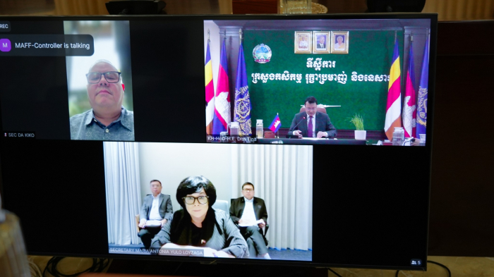 នៅរសៀលថ្ងៃទី២៥ ខែកុម្ភៈ ឆ្នាំ២០២៥ ឯកឧត្តម ឌិត ទីណា រដ្ឋមន្ត្រីក្រសួងកសិកម្ម រុក្ខាប្រមាញ់ និងនេសាទ បានអញ្ជើញចូលរួមប្រជុំពិភាក្សាការងារលើការជំរុញកិច្ចសហប្រតិបត្តិការទ្វេភាគីជាមួយ ឯកឧត្តមរដ្ឋមន្ត្រីក្រសួងកសិកម្មនៃសាធារណរដ្ឋហ្វីលីពីន តាមប្រព័ន្ធវីដេអូហ្សូម(Zoom) នៅទីស្តីការក្រសួងកសិកម្ម រុក្ខាប្រមាញ់ និងនេសាទ។