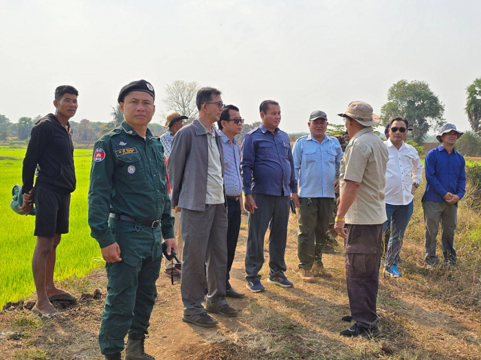 នៅថ្ងៃទី០២ ខែកុម្ភៈ ឆ្នាំ២០២៥ ឯកឧត្តម អុឹម ស៊ីថុល រដ្ឋលេខាធិការប្រចាំការក្រសួងកសិកម្ម រុក្ខាប្រមាញ់ និងនេសាទ និងជាអនុប្រធានក្រុមការងាររាជរដ្ឋាភិបាលចុះមូលដ្ឋានស្រុកចំការលើ អមដំណេីរដោយ ឯកឧត្តម វ៉ា ពិសី អនុរដ្ឋលេខាធិការក្រសួងកសិកម្ម រុក្ខាប្រមាញ់ និងនេសាទ លោកបណ្ឌិត សំ ពិសិដ្ឋ អភិបាលនៃគណៈអភិបាលស្រុកចំការលើ មន្រ្តីការិយាល័យជំនាញ និងកងកម្លាំងប្រដាប់អាវុធ បានចុះពិនិត្យស្ថានភាពបង្កបង្កើនផលស្រូវប្រាំង និងការបែងចែកវេនបើកទឹកស្រោចស្រពចំនួន០២ ទីតាំងនៅស្រុកចំការលេី ខេត្តកំពង់ចាម។