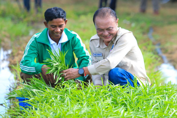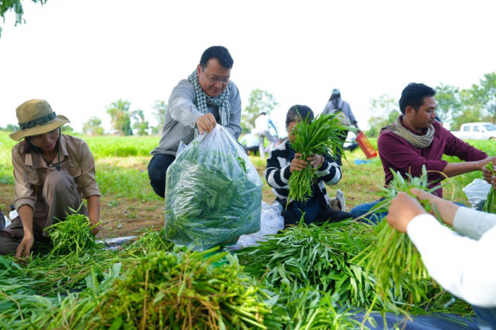 នាព្រឹកថ្ងៃទី០៥ ខែសីហា ឆ្នាំ២០២៥ ឯកឧត្តម ឌិត ទីណា រដ្ឋមន្រី្តក្រសួងកសិកម្ម រុក្ខាប្រមាញ់ និងនេសាទ និងជាប្រធានក្រុមការងាររាជរដ្ឋាភិបាលចុះមូលដ្ឋានខេត្តបន្ទាយមានជ័យ និងគណៈប្រតិភូអមដំណេីរ បានអញ្ជើញចុះប្រមូលផលបន្លែដេីម្បីផ្គត់ផ្គង់ដល់កងទ័ពជួរមុខ នៅសង្កាត់ទឹកថ្លា ក្រុងសិរីសោភ័ណ ខេត្តបន្ទាយមានជ័យ។