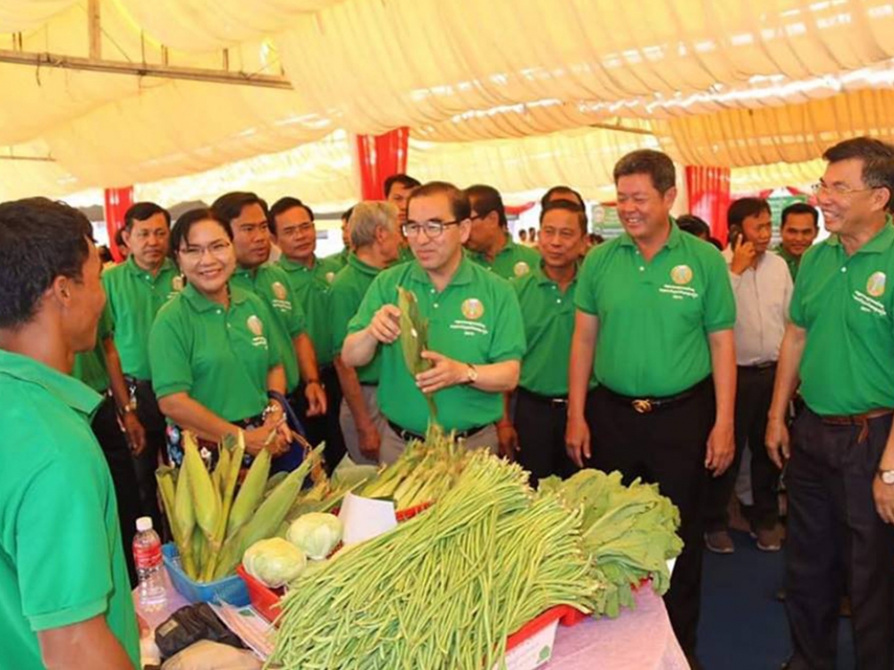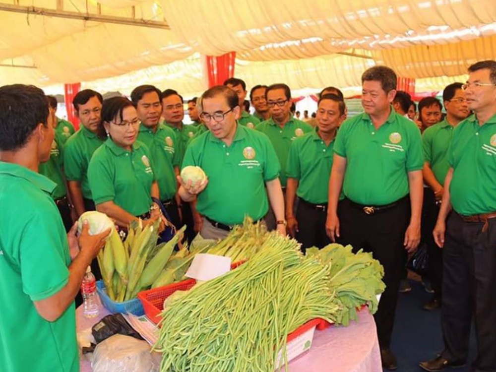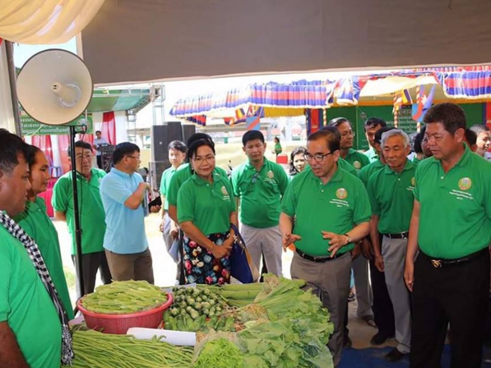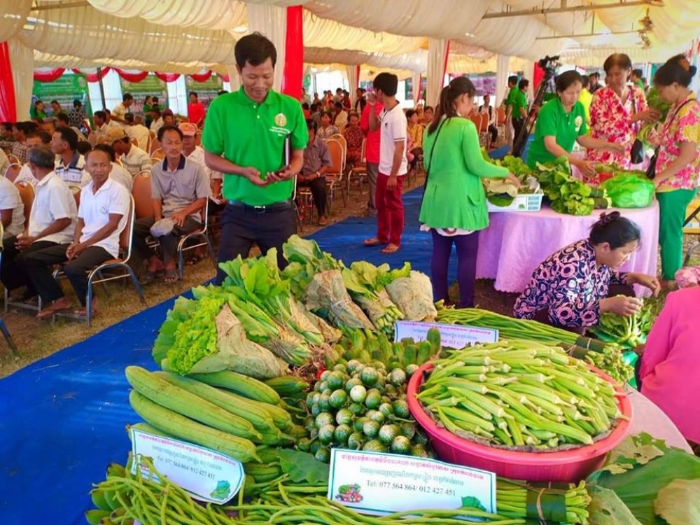 នៅទីរួមខេត្តកំពង់ចាមនាព្រឹកថ្ងៃពុធ ៧រោច ខែបឋមាសាឍ ឆ្នាំច សំរឹទ្ធិស័ក ព.ស២៥៦២ ត្រូវនឹងថ្ងៃទី០៤ ខែកក្កដា គ.ស ២០១៨ ឯកឧត្តម វេង សាខុន រដ្ឋមន្រ្តីក្រសួងកសិកម្ម រុក្ខាប្រមាញ់ និងនេសាទ រួមជាមួយឯកឧត្តម គួច ចំរើន អភិបាលនៃគណៈអភិបាលខេត្តកំពង់ចាម បានចូលរួមក្នុងពិធីផ្សារណាត់បន្លែសុវត្តិភាព និងផលិតផលសុវត្តិភាព ក្រោមគម្រោងសាកល្បងលើកដំបូងរបស់រាជរដ្ឋាភិបាលសម្រាប់ការជំរុញផលិតកម្មស្បៀងក្នុងខេត្តគោលដៅចំនួន១១ ដែលបានបោះទុនវិនិយោគចំនួនប្រមាណ២០ លានដុល្លារអាមេរិក ។ ការរៀបចំពិធីផ្សារណាត់បន្លែសុវត្តិភាព និងផលិតផលសុវត្តិភាព នាថ្ងៃនេះឡើងគឺក្នុងគោលបំណងបំផុសឲ្យប្រជាជនទូទៅមានចំណាប់អារម្មណ៍ក្នុងទិញបន្លែដែលមានគុណភាព និងសុវត្តភាព យកទៅបរិភោគ និងបង្ហាញឲ្យអ្នកទទួលទិញដុំយកទៅលក់នៅផ្សារដ៏ទៃ បានទទួលស្គាល់ពីសមត្ថភាពនៃការផលិតបន្លែប្រកបដោយគុណភាព និងសុវត្តភាពរបស់កសិករ ក្នុងខេត្តនេះ។ សូមបញ្ជាក់ថា គម្រោងខាងលើនេះមានគោលបំណងការលើកស្ទួយផលិតផលកសិកម្មជាតិ និងកាត់បន្ថយការនាំចូល ដោយត្រូវបង្កើនការផលិតនូវផលិតផលកសិកម្មប្រកបដោយគុណភាពនិងសុវត្តិភាព និងបង្កើនប្រាក់ចំណូលរបស់កសិករខ្នាតតូច និងមធ្យម ដែលកំពុងមានបញ្ហាប្រឈមនឹងការធ្វើចំណាកស្រុក តាមរយៈ៖ 1) ការបង្វែរទិសដៅនៃការផលិត ពីការអភិវឌ្ឍតាមបែបវិបុលកម្ម ទៅកាន់ការអភិវឌ្ឍតាមបែបប្រពលវប្បកម្ម និងកសិពាណិជ្ជកម្ម 2) ការបញ្ចូលបច្ចេកទេសទំនើបនៃការដាំដុះដំណាំ ការប្រើប្រាស់ពូជដំណាំ ការពង្រីកសមត្ថភាពដាំដុះលើផ្ទៃដីដែលមានស្រាប់ និងការផលិតនូវផលិផលកសិកម្មប្រកបដោយគុណភាព និងសុវត្តិភាព 3) ការបញ្ចូលបច្ចេកទេសស្រោចស្រពដំណក់ទឹក 4) ការកែលម្អរចនាសម្ព័ន្ធខ្សែចង្វាក់ផលិតកម្មក្នុងការផលិត 5) ការផលិតតាមគោលការណ៍នៃការអនុវត្តកសិកម្មល្អ 6) ការផ្តល់នូវចំណេះដឹងដល់កសិករក្នុងការផលិត វេចខ្ចប់ ស្របតាមស្តង់ និងតម្រូវការទីផ្សារ។ លើសពីនេះទៀត គម្រោងសាកល្បងនេះបាន និងកំពុងចូលរួមចំណែកក្នុងការផ្តល់ជាចក្ខុវិស័យ និងការរៀបចំកសាងគោលនយោបាយជាយុទ្ធសាស្រ្តក្នុងការអភិវឌ្ឍវិស័យកសិកម្មជាតិ សម្រាប់ឆ្នាំ ២០១៩ ដល់ឆ្នាំ២០៣០ ដែលត្រូវប្រែក្លាយកសិកម្មកម្ពុជាទៅជាកសិកម្ម ទំនើប មានលក្ខណៈប្រគួតប្រជែង បរិយាប័ន្ន ធន់នឹងការប្រែប្រួលអាកាសធាតុ និងនិរន្តភាព ដែលនាំដល់ការកើនឡើងនៃប្រាក់ចំណូលគ្រួសារកសិករស្របតាមកំណើនសេដ្ឋកិច្ច ប្រកបដោយវិបុលភាព និងសុខមាលភាពរបស់ប្រជាពលរដ្ឋកម្ពុជា ។